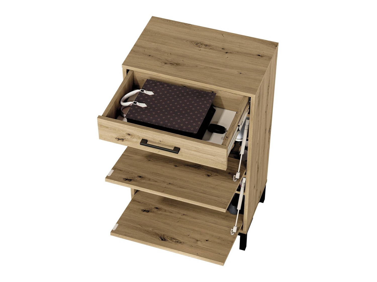 Das Schuhregal Madison passte super in unseren Vorraum. Mit der schönen Sitzbank daneben haben wir die Möglichkeit, Schuhe im Sitzen an- und auszuziehen. Beide Schuhschränke sehen sehr gut aus und es hat viel Platz für viele Schuhe. Wir haben einige unserer Schuhe davor geparkt für den Gang in die Garage, zum Müllcontainer und auch kurzfristig zum kleinen Einkauf. Dieses Modell besteht aus rostigem Metall und weist keine Probleme auf.