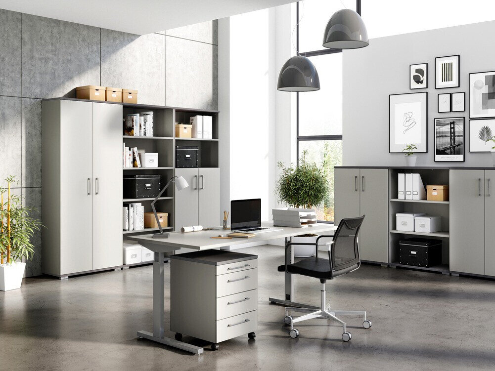 Die Möbelkollektion im zeitgenössischen Stil wird jeden Liebhaber des modernen Designs begeistern. Ergänzt wird die Kollektion durch Metallgriffe, die sich perfekt in das Design der Möbel einfügen. Alle Möbel der Kollektion sind mit einem farblosen Material überzogen, das die Möbel vor leichten Kratzern schützt. Bei dieser Möbelkollektion können Sie aus mehreren Farboptionen wählen. Die Kollektion kann dunkler und heller sein. Auch ein höhenverstellbarer Schreibtisch gehört zu dieser Möbelkollektion, um einen gemütlichen Arbeitsplatz zu schaffen. Funktionalität und Komfort sind wesentliche Merkmale dieser in Deutschland hergestellten Kollektion. Gestalten Sie mit dieser Möbelkollektion eine moderne Umgebung.