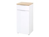 Mit dieser Möbelkollektion können Sie ein modernes Badezimmer einrichten. Die Möbel dieser Kollektion werden durch Metallgriffe in minimalistischem Design ergänzt, die sich perfekt in das Möbeldesign einfügen und fast nicht mehr wahrnehmbar sind. Die Badezimmerkollektion kombiniert matte Eichenholzoptik „Navarra“ oder graphitfarbene Oberflächen mit glänzendem Weiß. Sie können Möbel aus dieser Kollektion in mehreren Farbvarianten wählen. Die Möbel sind leicht zu pflegen, da sie mit einem farblosen Material überzogen sind, das sie vor kleinen Kratzern schützt und eine einfache Reinigung von angesammeltem Schmutz ermöglicht. Die Kanten der Kollektion sind mit einem Abschlussband aus starkem Kunststoff versehen, das die Möbel vor kleinen Beschädigungen schützt. Die Schubladen und Türen sind mit einem geräuschlosen Schließmechanismus ausgestattet, der verhindert, dass sie sich schnell schließen. Funktionalität und Komfort sind wesentliche Merkmale dieser in Deutschland hergestellten Kollektion. Gestalten Sie mit dieser Kollektion ein modernes Bad.