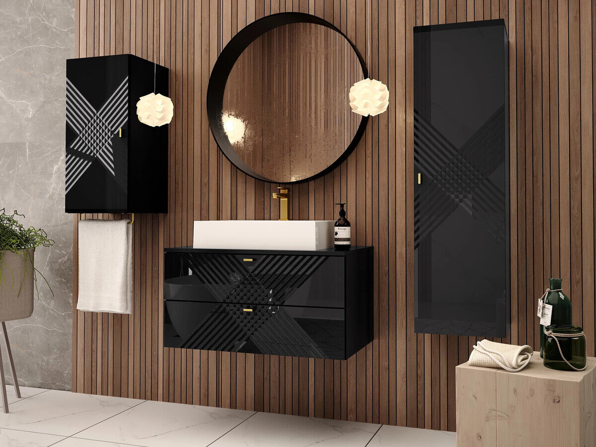 Stellen Sie sich diese Kollektion vor, die von modernen Klassikern im Wohnbereich inspiriert ist. Es besticht sofort durch seine Eleganz. Jedes Möbelstück zeichnet sich durch eine Mischung aus Stil und Raffinesse aus, die durch metallisch-goldfarbene Beine und glänzende Fronten betont wird. Dank versteckter Griffe bleibt das Design aufgeräumt und erhält modernen Charme. Die Möbel verfügen über einen integrierten „Push to open“-Mechanismus, der ein einfaches Öffnen und Schließen von Türen und Schubladen mit einem einzigen Tastendruck ermöglicht. Die Möbel sind für einen Roboterstaubsauger geeignet, sodass auch an schwer zugänglichen Stellen die Sauberkeit gewährleistet ist. Es ist eine perfekte, zeitlose Kombination aus modernen und traditionellen Stilen.