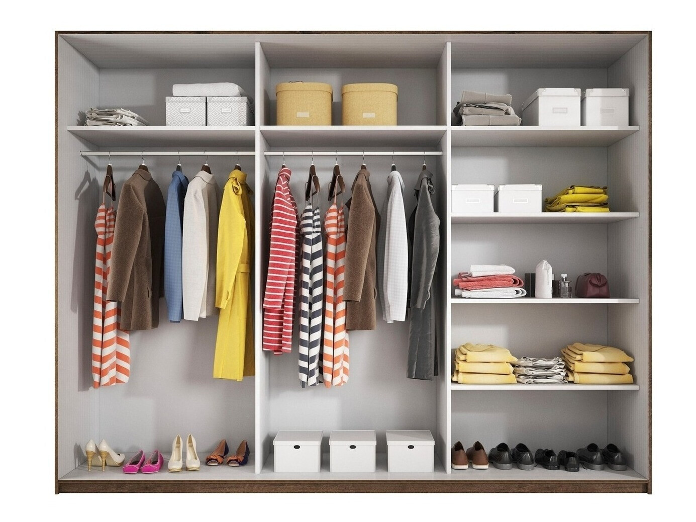 Die Schlafzimmermöbel sind aus hochwertigen Möbelplatten gefertigt, wobei die Kombination von matten und glänzenden Oberflächen ein kontrastreiches und modisches Duo bildet. Schränke in drei verschiedenen Größen, kombiniert mit einem Bett, einem Nachttisch oder einer Kommode aus der gleichen Kollektion, sorgen für einen harmonischen Stil im Schlafzimmer. Das natürliche Holzmuster sieht besonders schön aus, wenn es mit hellen Farben kombiniert wird. Die glänzenden Oberflächen der Schränke verleihen dem Schlafzimmer ein Gefühl von Frische. Wenn Sie sich für diese Möbelkollektion entscheiden, können Sie ein modernes und eklektisches Schlafzimmer gestalten.