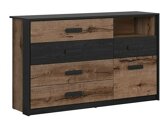 Liebhaber des Industriestils müssen diese Kollektion sehen. In den Fassaden der Kollektion dominieren die dunklen Farben „Monastery” und schwarze Eiche. Die dunkle Eichenfarbe wird perfekt durch die schwarze Umrandung ergänzt, die dem Möbeldesign Einzigartigkeit verleiht. Es wurden recht massive schwarze Griffe gewählt, die sich perfekt in das Ganze einfügen. Die Farbe und Muster des Holzes schaffen ein einzigartig aussehendes industrielles Möbeldesign. Die Kollektion verwendet gehärtetes Glas, das sicherer ist und eine größere mechanische Beständigkeit als gewöhnliches Glas aufweist. Für die Einrichtung des Schlafzimmers können Sie Betten in verschiedenen Größen mit oder ohne Bettkasten wählen. Das Bettset enthält ein Gitter mit einem Gashebemechanismus. Sie können der Kollektion zusätzlichen Charme verleihen, indem Sie zusätzlich eine energiesparende LED-Beleuchtung bestellen. Die Möbel der Kollektion haben sowohl offene als auch geschlossene Stauräume und eignen sich daher für die praktische Präsentation persönlicher Gegenstände.