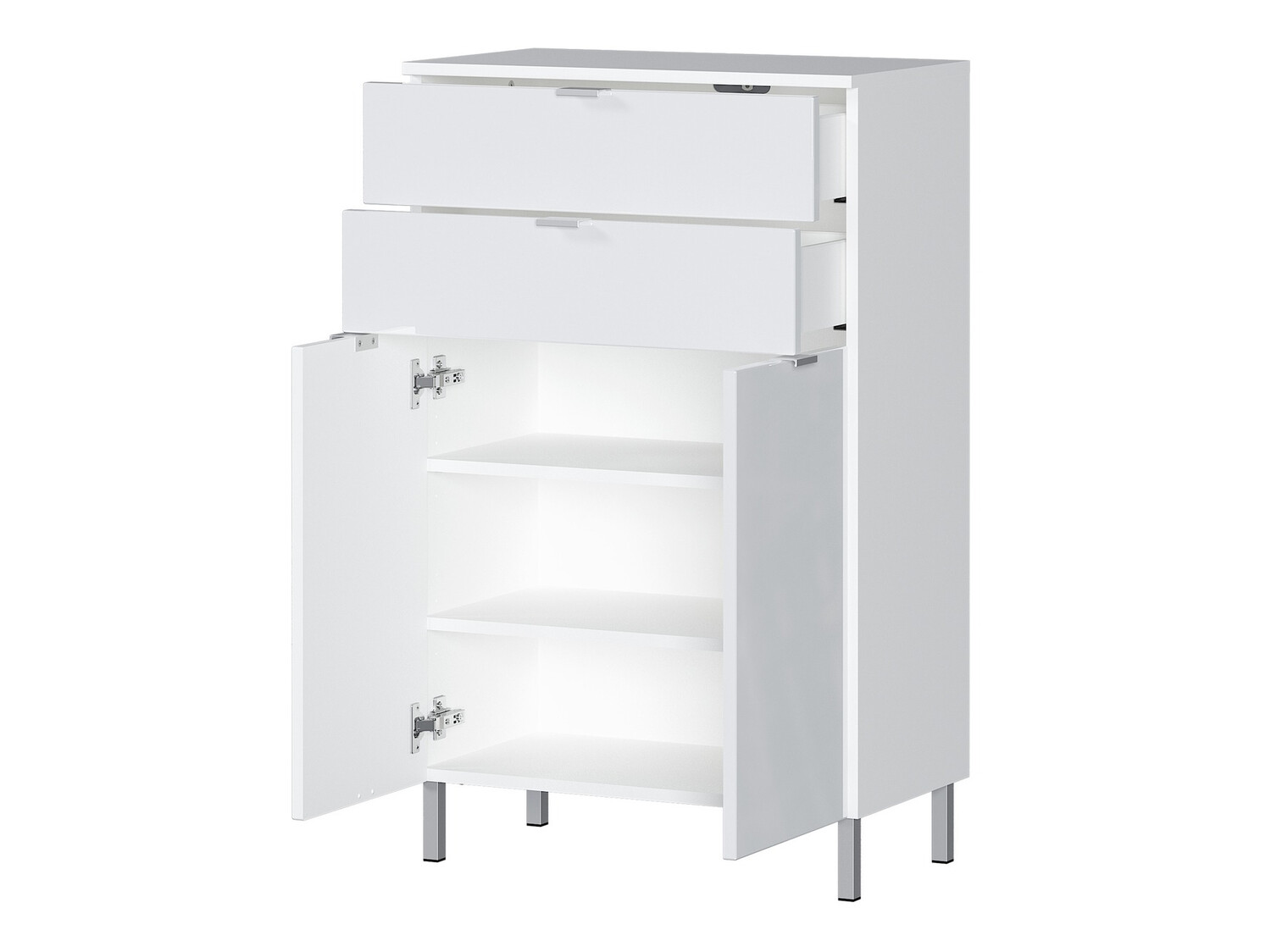 Diese Möbelkollektion wird Ihnen helfen, eine Einrichtung im modernen Stil zusammenzustellen. Die Möbel dieser Kollektion werden durch Metallfüße ergänzt, die dem Raum Leichtigkeit verleihen. Die Griffe aus Metall in minimalistischem Design fügen sich perfekt in das Möbeldesign ein und sind fast nicht mehr wahrnehmbar. In der Badezimmerkollektion werden matte Oberflächen mit glänzendem Weiß kombiniert. Sie können Möbel aus dieser Kollektion in mehreren Farbvarianten wählen. Die Möbel sind leicht zu pflegen, da sie mit einem farblosen Material überzogen sind, das sie vor kleinen Kratzern schützt und eine einfache Reinigung von angesammeltem Schmutz ermöglicht. Die Kanten der Möbel sind mit einer Zierleiste abgedeckt - dieses Material besteht aus robustem Kunststoff, der die Möbel vor kleinen Beschädigungen schützt. Die Schubladen und Türen sind mit einem geräuschlosen Schließmechanismus ausgestattet, der verhindert, dass sie sich schnell schließen. Funktionalität und Komfort sind wesentliche Merkmale dieser in Deutschland hergestellten Kollektion. Schaffen Sie mit dieser Kollektion ein modernes Umfeld.