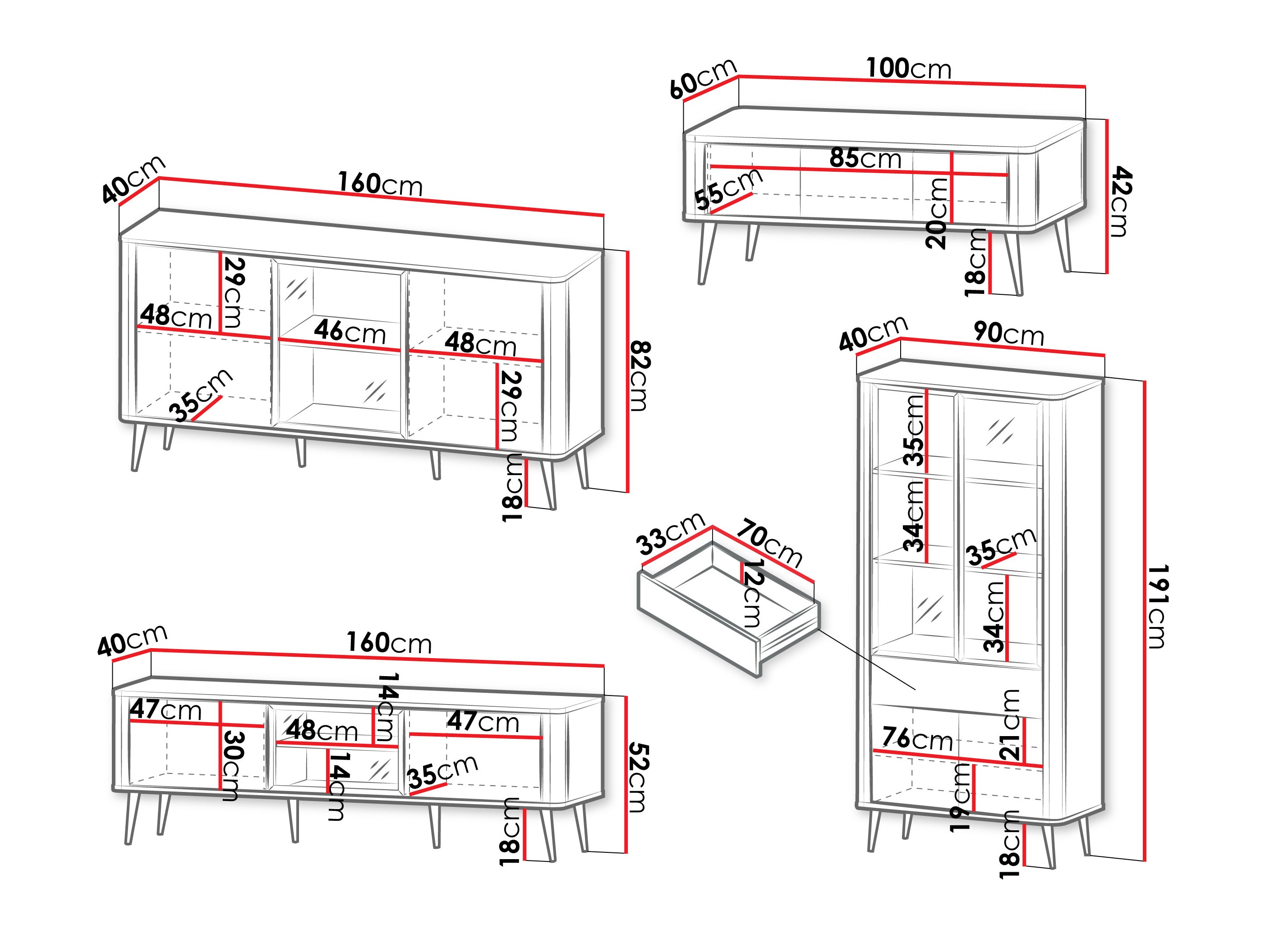 Abmessungen der Schränke: