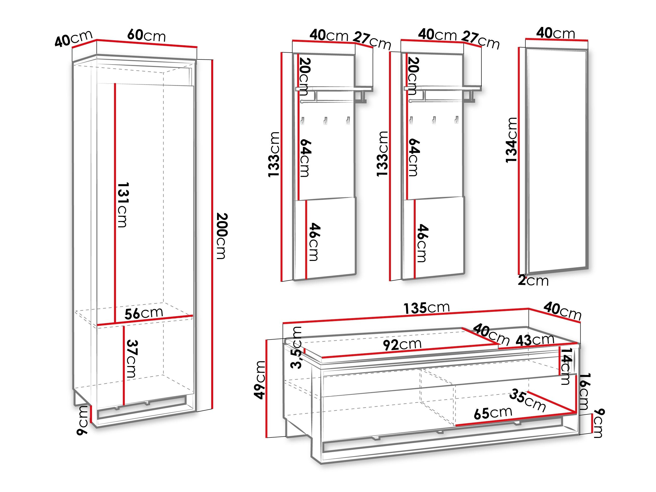 Abmessungen des Kleiderschranks: