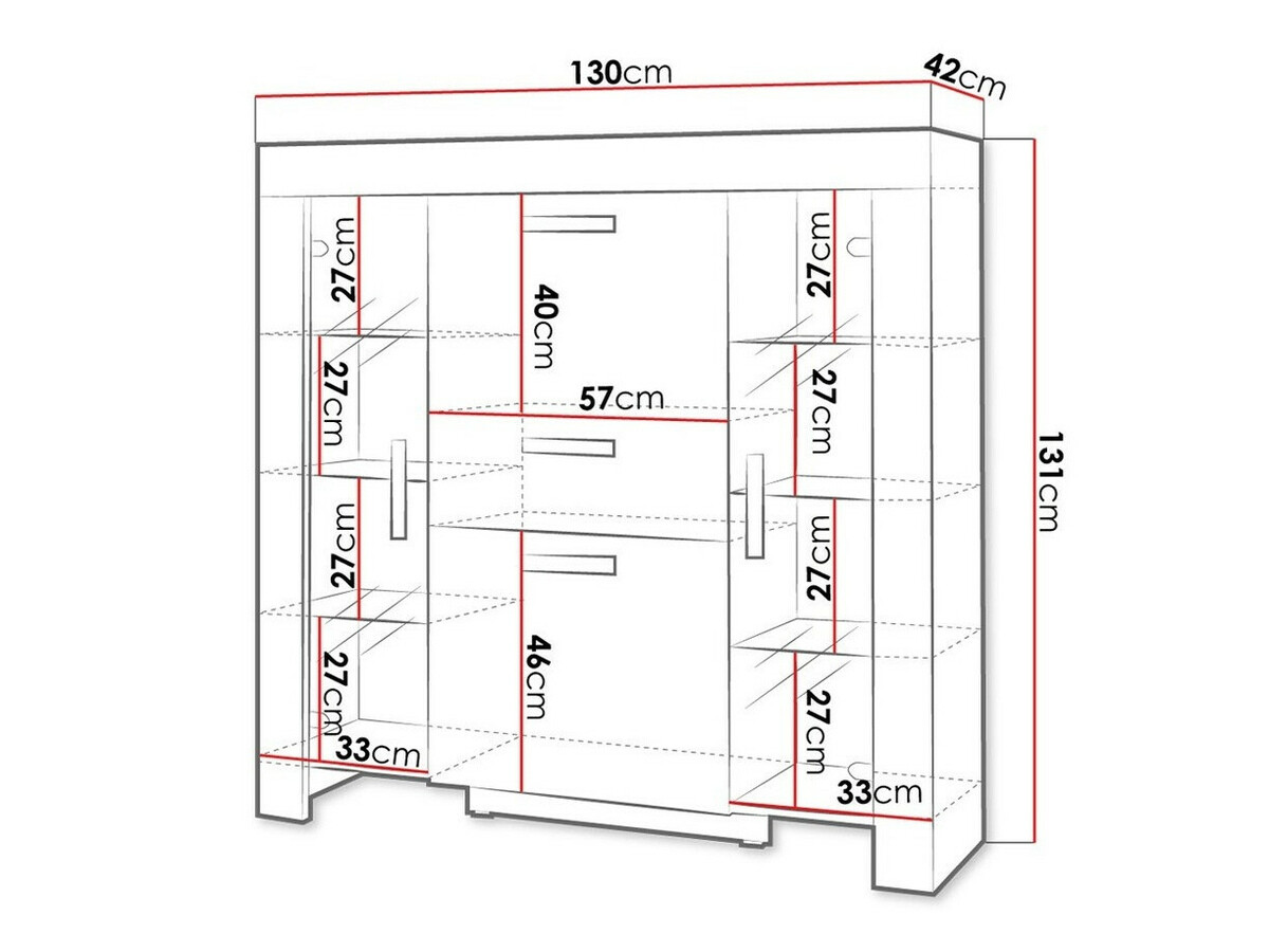 Die Vitrine hat gute Maße, besonders gefällt mir die Höhe. Modern ist auch der helle Ton der Möbel. Die Griffe zum Öffnen der Türen wirken allerdings labil, denn sollten sie nicht festgeschraubt werden, kann das Glas brechen. Alles ist jetzt ok.