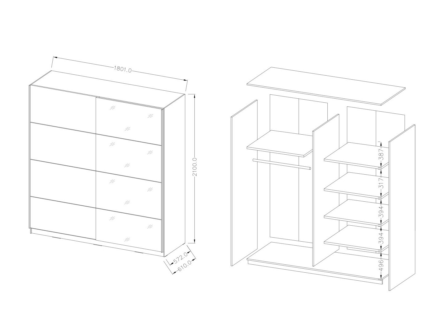 Qualität, einfache Montage, modernes Design. Die Spiegel können nach jedermanns Vorstellung an den Seiten des Kleiderschranks verteilt werden.