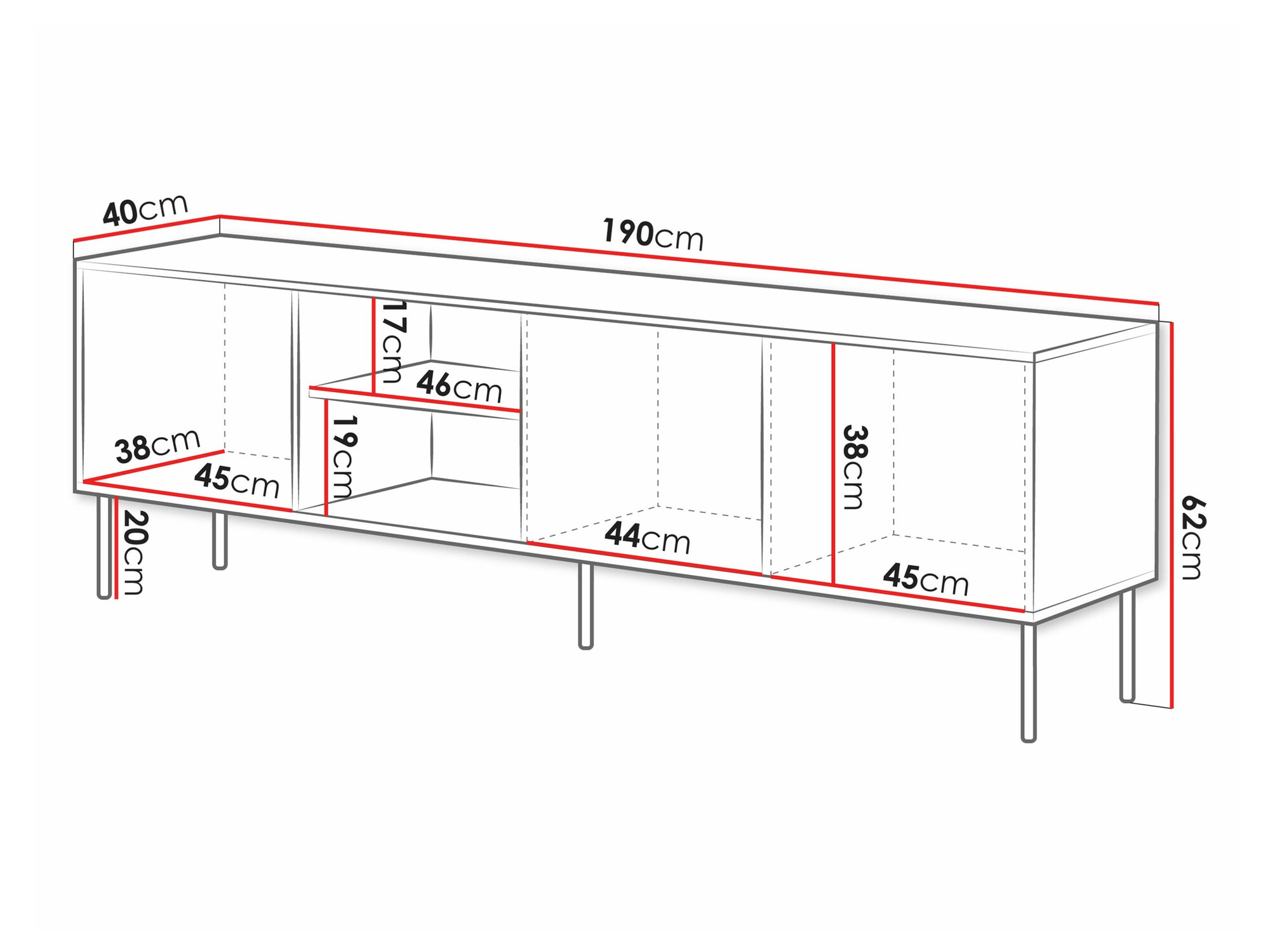 Höhe der Beine: