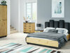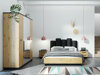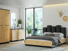 Diese Möbelkollektion bietet Möbel für das Wohn- und Schlafzimmer. Modernes Design und elegante Linien ergänzen sich zu einem perfekten Ganzen. Die Kollektion besticht durch ihre warmen Farben und Holzmuster. Die schwarzen Möbelplatten in Matt passen zu den Fronten in Eichenholzoptik. Diese Farbkombination ergänzt sich und unterstreicht die Form der Möbel. In Vitrinen wird gehärtetes Glas verwendet, das fester ist als gewöhnliches Glas. Ein Bett mit einem exklusiven Design wird zum Highlight des Schlafzimmers. Weiches Kopfteil, Bettkasten, Gasdruckfedern, alles was Sie für Ihre perfekte Erholung brauchen. Die Möbelkanten aus dieser Kollektion sind mit einem Abschlussband zum Schutz der Kanten ausgestattet.