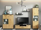 Bei der Suche nach einem Möbelstück für Ihren Wohnbereich ist es wichtig, die Harmonie der Einrichtung beizubehalten. Wenn Sie vorhaben, Ihr Zuhause selbst zu gestalten, sind Möbelkollektionen eine echte Hilfe. Möbelkollektionen helfen Ihnen, ohne viel Aufwand eine solide Inneneinrichtung zu gestalten. Diese Möbelkollektion bietet Möbel für das Wohn- und Schlafzimmer. Modernes Design und elegante Linien ergänzen sich zu einem perfekten Ganzen. Die Kollektion besticht durch ihre warmen Farben und Holzmuster. Die schwarzen Möbelplatten in Matt passen zu den Fronten in Eichenholzoptik. Diese Farbkombination ergänzt sich und unterstreicht die Form der Möbel. In Vitrinen wird gehärtetes Glas verwendet, das fester ist als gewöhnliches Glas. Ein Bett mit einem exklusiven Design wird zum Highlight des Schlafzimmers. Weiches Kopfteil, Bettkasten, Gasdruckfedern, alles was Sie für Ihre perfekte Erholung brauchen. Die Möbelkanten aus dieser Kollektion sind mit einem Abschlussband zum Schutz der Kanten ausgestattet. Machen Sie sich keine Sorgen um die Einrichtung und schaffen Sie sich ein gemütliches Wohnambiente aus Einzelmöbeln oder wählen Sie aus Möbelsets.