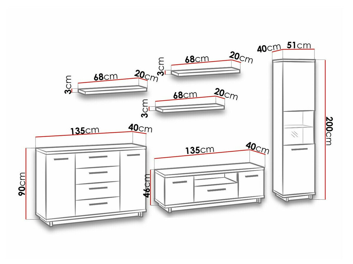 Bei der Suche nach einem Möbelstück für Ihren Wohnbereich ist es wichtig, die Harmonie der Einrichtung beizubehalten. Wenn Sie vorhaben, Ihr Zuhause selbst zu gestalten, sind Möbelkollektionen eine echte Hilfe. Möbelkollektionen helfen Ihnen, ohne viel Aufwand eine solide Inneneinrichtung zu gestalten. Diese Möbelkollektion bietet Möbel für das Wohn- und Schlafzimmer. Modernes Design und elegante Linien ergänzen sich zu einem perfekten Ganzen. Die Kollektion besticht durch ihre warmen Farben und Holzmuster. Die schwarzen Möbelplatten in Matt passen zu den Fronten in Eichenholzoptik. Diese Farbkombination ergänzt sich und unterstreicht die Form der Möbel. In Vitrinen wird gehärtetes Glas verwendet, das fester ist als gewöhnliches Glas. Ein Bett mit einem exklusiven Design wird zum Highlight des Schlafzimmers. Weiches Kopfteil, Bettkasten, Gasdruckfedern, alles was Sie für Ihre perfekte Erholung brauchen. Die Möbelkanten aus dieser Kollektion sind mit einem Abschlussband zum Schutz der Kanten ausgestattet. Machen Sie sich keine Sorgen um die Einrichtung und schaffen Sie sich ein gemütliches Wohnambiente aus Einzelmöbeln oder wählen Sie aus Möbelsets.