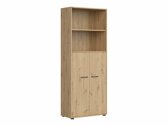 Wenn Sie auf der Suche nach funktionellen Möbeln sind, ist diese Kollektion genau das Richtige für Sie! Die Kombination aus Eichenholzoptik „Artisan“ und Schwarz verleiht den Möbeln Modernität. Die minimalistischen schwarzen Kunststoffgriffe fügen sich perfekt in das Design ein. Die Möbel der Kollektion bestehen aus laminierten Spanplatten mit einer kratzfesten Oberfläche. Mit dieser Schutzfolie werden die Möbel nicht nur kratzfest, sondern auch besser vor Feuchtigkeit oder Flecken geschützt. Der in den Möbeln eingebaute geräuschlosen Schließmechanismus verbessert das Benutzererlebnis und sorgt für ein geräuschloses Öffnen und Schließen der Türen und Schubladen. Die Möbel haben sowohl offene als auch geschlossene Ablageflächen. So können persönliche Gegenstände auf sichtbaren Regalen oder versteckt hinter Türen aufbewahrt werden. Für die Kollektion wird wärmebehandeltes, gehärtetes Milchglas verwendet. Seine Widerstandsfähigkeit ist 5- bis 6-mal höher als die von gewöhnlichem, thermisch unbehandeltem Glas. Das Glas wird von einem schwarzen Aluminiumrahmen eingefasst. Die Regale der Kollektion sind universell einsetzbar. Bei der Montage kann man entscheiden, in welche Richtung sich die Tür öffnen soll. Die Schubladenschränke haben Rollen anstelle von Füßen, was das Verschieben der Möbel im Raum sehr einfach und bequem macht. Die Einlegeböden ermöglichen außerdem eine noch sicherere Aufbewahrung von persönlichen Gegenständen. Das Gestell der Schreibtische dieser Kollektion besteht aus einem schwarzen Metallrahmen, der für Stabilität sorgt. Für diejenigen, die einen funktionalen Schreibtisch suchen, bietet die Kollektion Schreibtische mit einer elektrischen Höhenverstellung. Mit Hilfe einiger Knöpfe lässt sich die Höhe des Tisches verändern, so dass Sie Ihre Arbeit noch bequemer und ergonomischer erledigen können. Mit den funktionalen und universellen Möbeln wird die Einrichtung eines Büros zum Vergnügen.