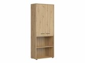 Wenn Sie auf der Suche nach funktionellen Möbeln sind, ist diese Kollektion genau das Richtige für Sie! Die Kombination aus Eichenholzoptik „Artisan“ und Schwarz verleiht den Möbeln Modernität. Die minimalistischen schwarzen Kunststoffgriffe fügen sich perfekt in das Design ein. Die Möbel der Kollektion bestehen aus laminierten Spanplatten mit einer kratzfesten Oberfläche. Mit dieser Schutzfolie werden die Möbel nicht nur kratzfest, sondern auch besser vor Feuchtigkeit oder Flecken geschützt. Der in den Möbeln eingebaute geräuschlosen Schließmechanismus verbessert das Benutzererlebnis und sorgt für ein geräuschloses Öffnen und Schließen der Türen und Schubladen. Die Möbel haben sowohl offene als auch geschlossene Ablageflächen. So können persönliche Gegenstände auf sichtbaren Regalen oder versteckt hinter Türen aufbewahrt werden. Für die Kollektion wird wärmebehandeltes, gehärtetes Milchglas verwendet. Seine Widerstandsfähigkeit ist 5- bis 6-mal höher als die von gewöhnlichem, thermisch unbehandeltem Glas. Das Glas wird von einem schwarzen Aluminiumrahmen eingefasst. Die Regale der Kollektion sind universell einsetzbar. Bei der Montage kann man entscheiden, in welche Richtung sich die Tür öffnen soll. Die Schubladenschränke haben Rollen anstelle von Füßen, was das Verschieben der Möbel im Raum sehr einfach und bequem macht. Die Einlegeböden ermöglichen außerdem eine noch sicherere Aufbewahrung von persönlichen Gegenständen. Das Gestell der Schreibtische dieser Kollektion besteht aus einem schwarzen Metallrahmen, der für Stabilität sorgt. Für diejenigen, die einen funktionalen Schreibtisch suchen, bietet die Kollektion Schreibtische mit einer elektrischen Höhenverstellung. Mit Hilfe einiger Knöpfe lässt sich die Höhe des Tisches verändern, so dass Sie Ihre Arbeit noch bequemer und ergonomischer erledigen können. Mit den funktionalen und universellen Möbeln wird die Einrichtung eines Büros zum Vergnügen.