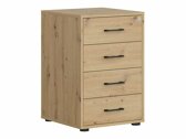 Wenn Sie auf der Suche nach funktionellen Möbeln sind, ist diese Kollektion genau das Richtige für Sie! Die Kombination aus Eichenholzoptik „Artisan“ und Schwarz verleiht den Möbeln Modernität. Die minimalistischen schwarzen Kunststoffgriffe fügen sich perfekt in das Design ein. Die Möbel der Kollektion bestehen aus laminierten Spanplatten mit einer kratzfesten Oberfläche. Mit dieser Schutzfolie werden die Möbel nicht nur kratzfest, sondern auch besser vor Feuchtigkeit oder Flecken geschützt. Der in den Möbeln eingebaute geräuschlosen Schließmechanismus verbessert das Benutzererlebnis und sorgt für ein geräuschloses Öffnen und Schließen der Türen und Schubladen. Die Möbel haben sowohl offene als auch geschlossene Ablageflächen. So können persönliche Gegenstände auf sichtbaren Regalen oder versteckt hinter Türen aufbewahrt werden. Für die Kollektion wird wärmebehandeltes, gehärtetes Milchglas verwendet. Seine Widerstandsfähigkeit ist 5- bis 6-mal höher als die von gewöhnlichem, thermisch unbehandeltem Glas. Das Glas wird von einem schwarzen Aluminiumrahmen eingefasst. Die Regale der Kollektion sind universell einsetzbar. Bei der Montage kann man entscheiden, in welche Richtung sich die Tür öffnen soll. Die Schubladenschränke haben Rollen anstelle von Füßen, was das Verschieben der Möbel im Raum sehr einfach und bequem macht. Die Einlegeböden ermöglichen außerdem eine noch sicherere Aufbewahrung von persönlichen Gegenständen. Das Gestell der Schreibtische dieser Kollektion besteht aus einem schwarzen Metallrahmen, der für Stabilität sorgt. Für diejenigen, die einen funktionalen Schreibtisch suchen, bietet die Kollektion Schreibtische mit einer elektrischen Höhenverstellung. Mit Hilfe einiger Knöpfe lässt sich die Höhe des Tisches verändern, so dass Sie Ihre Arbeit noch bequemer und ergonomischer erledigen können. Mit den funktionalen und universellen Möbeln wird die Einrichtung eines Büros zum Vergnügen.
