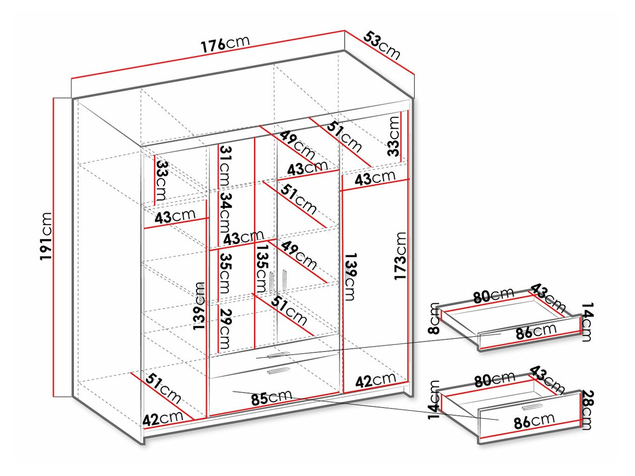 Guter und praktischer Kleiderschrank. In Bezug auf die Montage ist es einfach zu montieren. Die Hauptsache ist, die Anweisungen für die verschiedenen Scharniere für die Türen zu befolgen. Sehr gut verpackt, ohne Kratzer und Dellen
