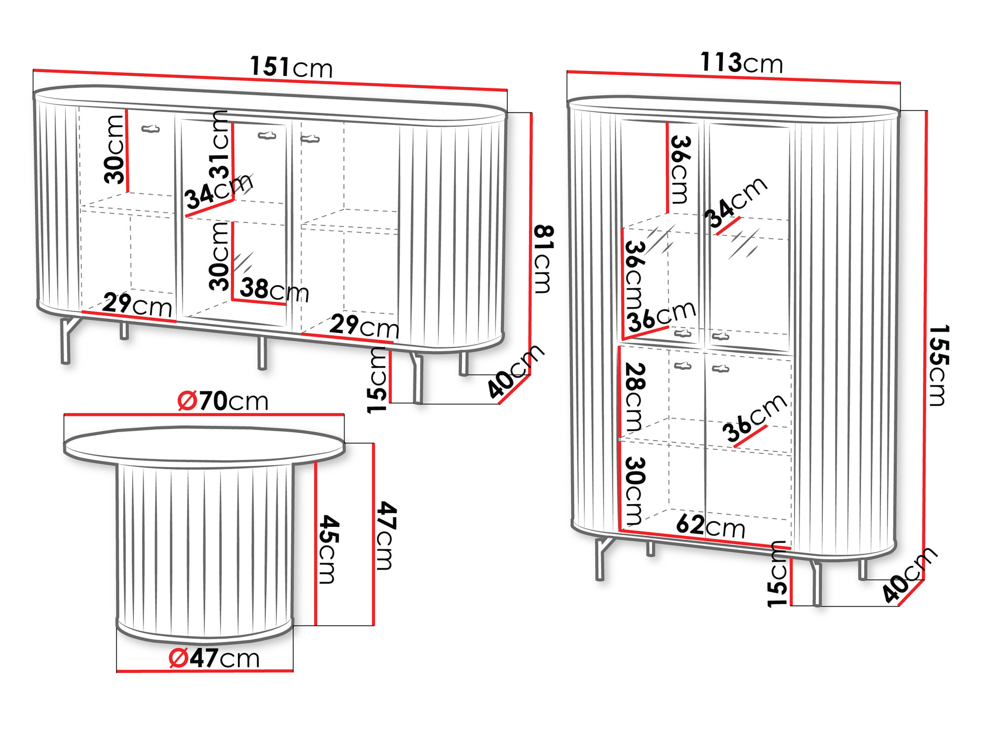 Abmessungen der Schränke: