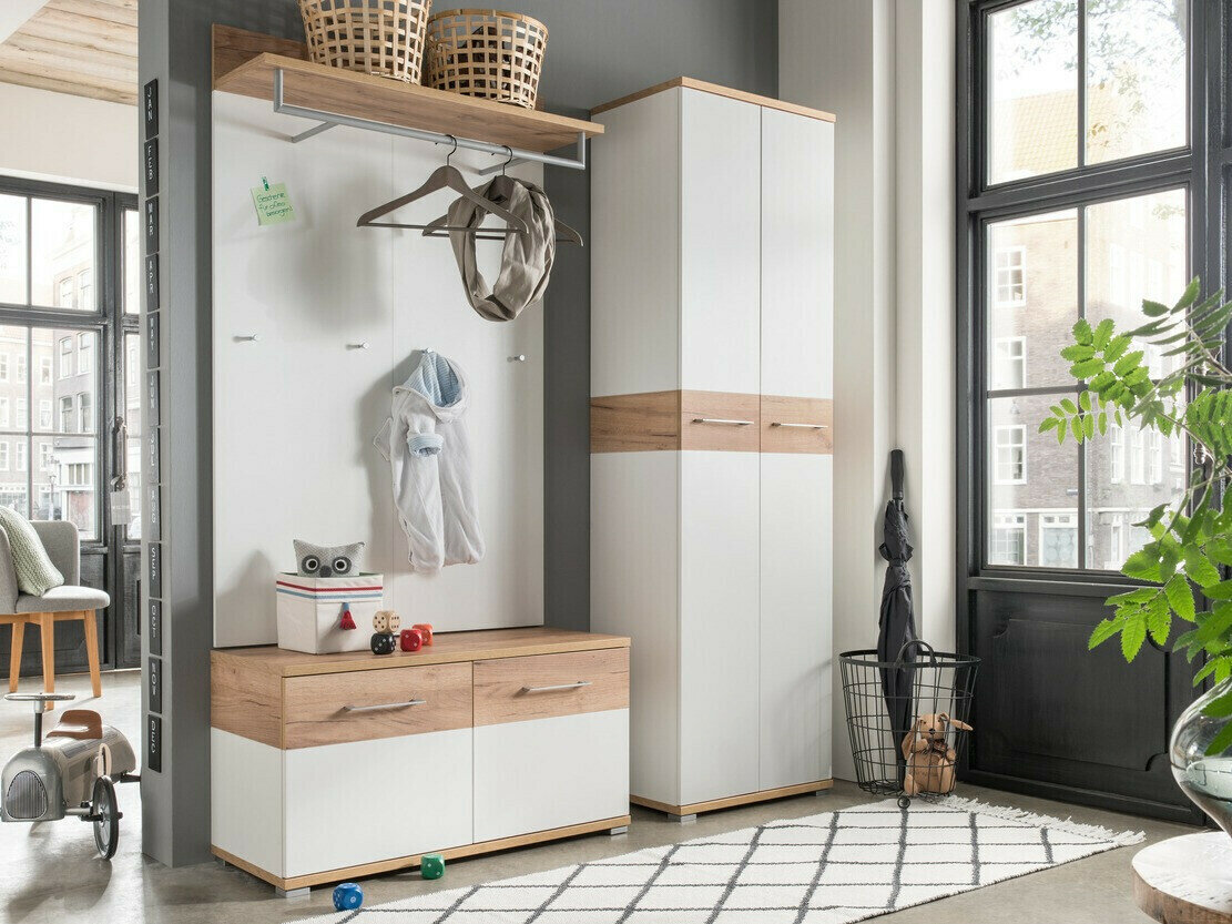 Die Möbelkollektion, die Ihnen hilft, ein modernes Interieur zu Hause zu schaffen. Ergänzt werden die Möbel dieser Kollektion durch metalle, minimalistische Designgriffe, die sich perfekt in das Möbeldesign einfügen. Bei den Möbeln der Kollektion können Sie aus mehreren Farben wählen. Mattweiß kann mit mehreren Farben kombiniert werden: Eiche „Navarra“ und Betongrau. Die Möbel sind pflegeleicht, da sie mit einem farblosen Material überzogen sind, das sie vor kleinen Kratzern schützt und es Ihnen ermöglicht, angesammelten Schmutz leicht zu reinigen. Die mit kunststoffgeschützten Möbelkanten sind widerstandsfähig gegen Beschädigungen durch den täglichen Gebrauch. Die Schubladen und Türen verfügen über einen geräuschlosen Schließmechanismus, das Besondere daran ist, dass er ein schnelles Schließen verhindert. Funktionalität und Komfort sind wesentliche Merkmale dieser in Deutschland hergestellten Kollektion. Gestalten Sie mit dieser Möbelkollektion eine harmonische Wohnumgebung.