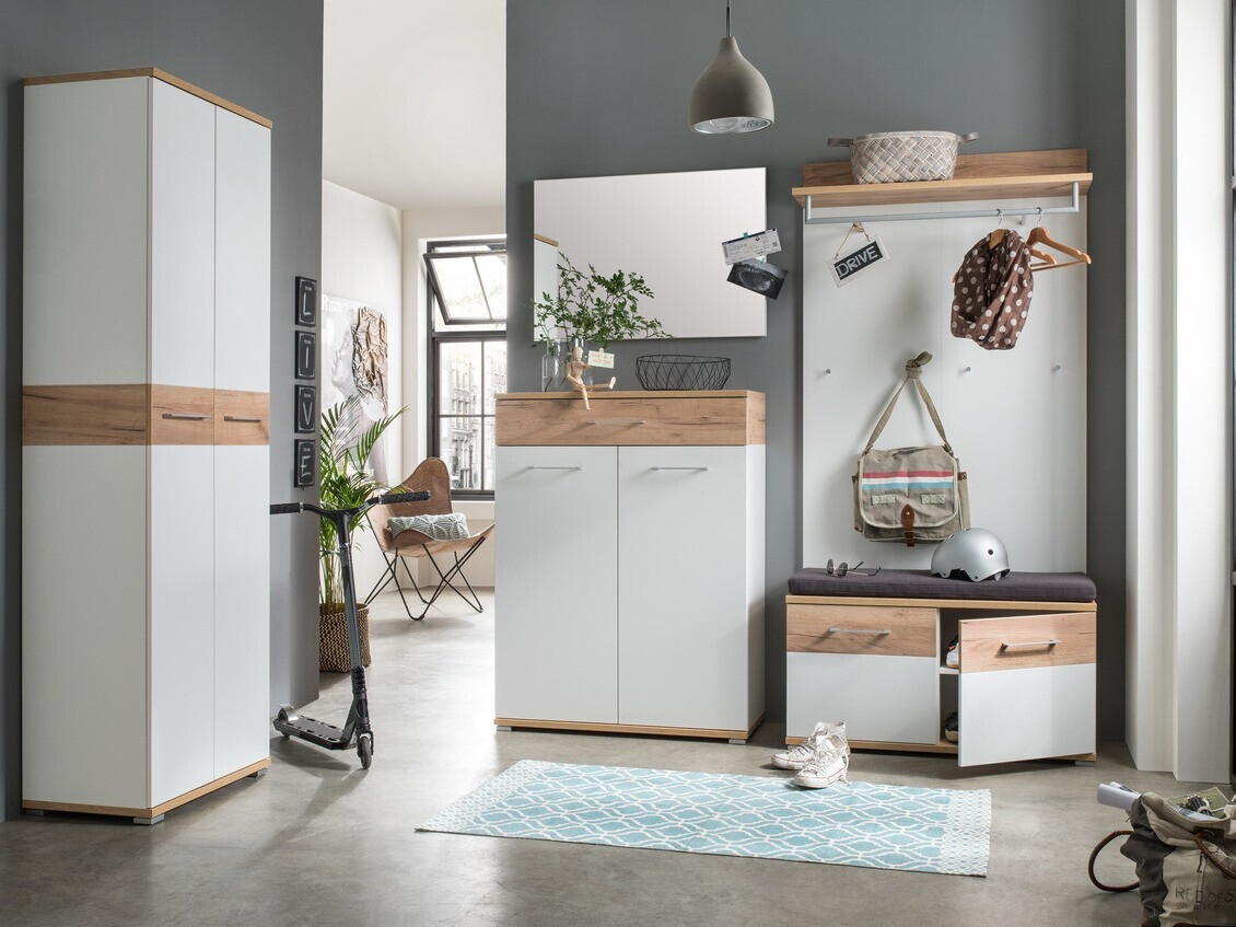Die Möbelkollektion, die Ihnen hilft, ein modernes Interieur zu Hause zu schaffen. Ergänzt werden die Möbel dieser Kollektion durch metalle, minimalistische Designgriffe, die sich perfekt in das Möbeldesign einfügen. Bei den Möbeln der Kollektion können Sie aus mehreren Farben wählen. Mattweiß kann mit mehreren Farben kombiniert werden: Eiche „Navarra“ und Betongrau. Die Möbel sind pflegeleicht, da sie mit einem farblosen Material überzogen sind, das sie vor kleinen Kratzern schützt und es Ihnen ermöglicht, angesammelten Schmutz leicht zu reinigen. Die mit kunststoffgeschützten Möbelkanten sind widerstandsfähig gegen Beschädigungen durch den täglichen Gebrauch. Die Schubladen und Türen verfügen über einen geräuschlosen Schließmechanismus, das Besondere daran ist, dass er ein schnelles Schließen verhindert. Funktionalität und Komfort sind wesentliche Merkmale dieser in Deutschland hergestellten Kollektion. Gestalten Sie mit dieser Möbelkollektion eine harmonische Wohnumgebung.