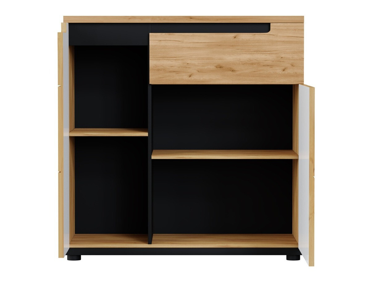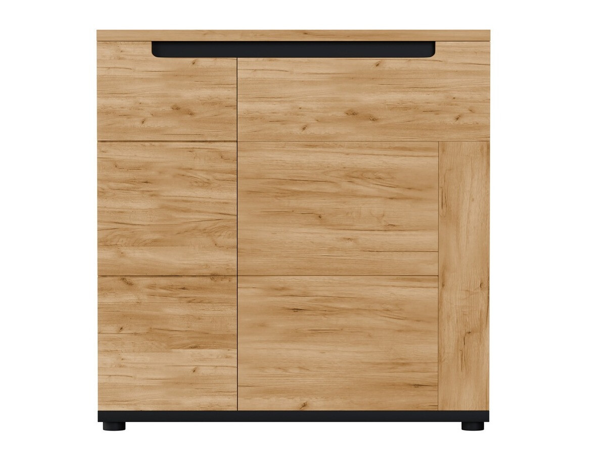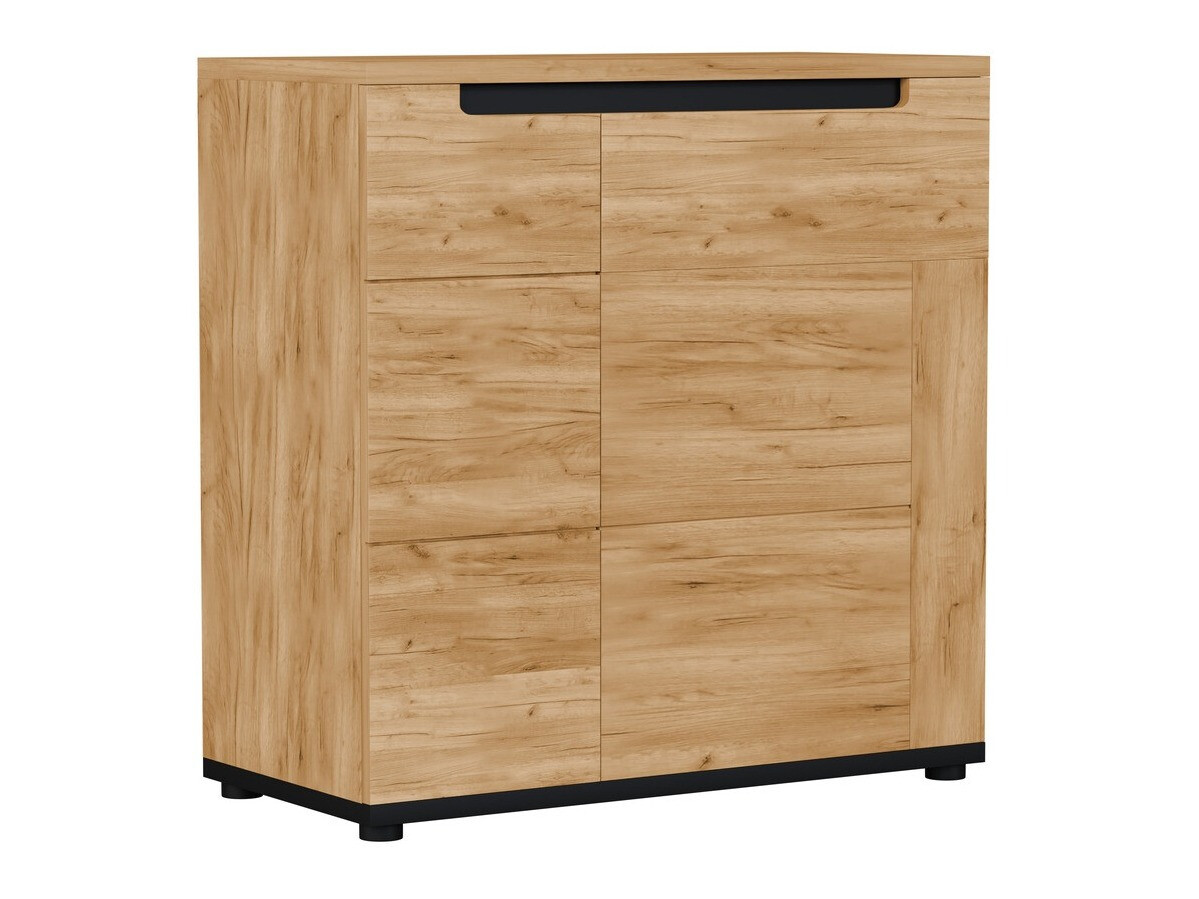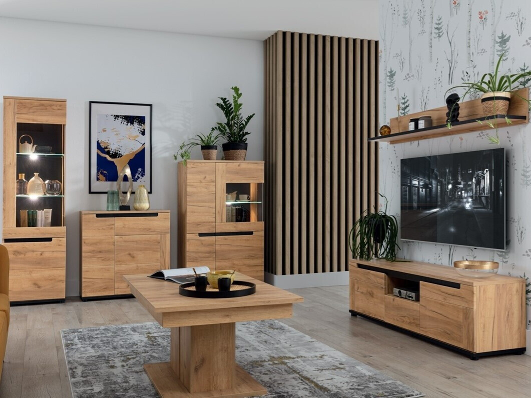 Eine Kollektion moderner Möbel, die die Inneneinrichtung des Hauses mit subtiler Wärme und Harmonie ergänzt. Die goldene Farbe der „Craft“-Eiche verleiht diesem Möbelstück einen zeitlosen und dennoch modernen Look. Das Möbel verfügt über einen geräuschlosen Schließmechanismus, der das geräuschvolle und plötzliche Schließen von Schubladen und Türen verhindert. Außerdem werden die Kanten der Möbel geschützt, sodass Sie sich keine Sorgen über deren schnelle Abnutzung machen müssen. Das Design der Vitrinen wird durch gehärtetes Glas ergänzt, das langlebiger als gewöhnliches Glas ist. Dezente, versteckte Griffe bereichern nicht nur die Ästhetik der Möbel, sondern unterstreichen auch deren minimalistische Formen. Diese Kollektion ist eine gute Wahl für alle, die ihrem Zuhause ein Gefühl von Modernität und Wärme verleihen möchten.