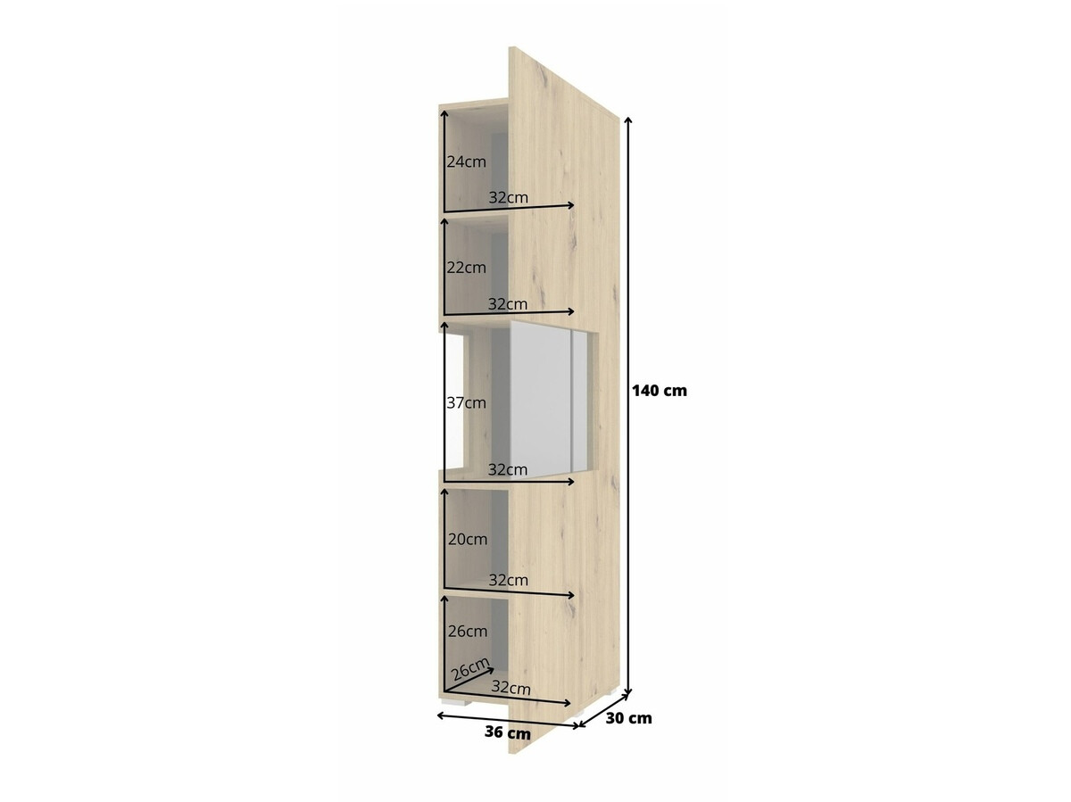Nun ja, die Wahrheit ist, dass ich erwartet hatte, dass es höher ist, die mitgelieferten Beine sind aus Kunststoff und nicht ausreichend für den Halt der Vitrine, man muss sie auf jeden Fall an die Wand hängen.