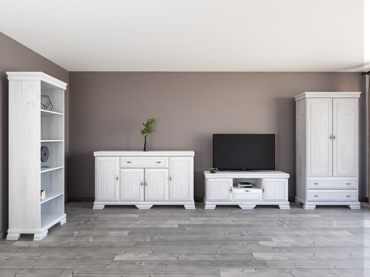 Diese Kollektion im klassischen Stil ist für diejenigen, die zeitloses Design und Eleganz schätzen. Die Möbel der Kollektion sind mit Metallgriffen in exklusivem Design verziert, die jedem Stück einen luxuriösen Akzent verleihen. Eines der wichtigsten Merkmale dieser Kollektion ist ihre kratzfeste Oberfläche, die die Langlebigkeit der Möbel gewährleistet. Selbst nach vielen Jahren kontinuierlicher Nutzung behalten diese Möbel ihr tadelloses Aussehen. Diese Kollektion strahlt nicht nur Eleganz aus, sondern legt auch Wert auf Funktionalität. Die Regale und Schubladen sind geräumig und sorgen dafür, dass Sie genügend Platz haben, um Dinge organisiert aufzubewahren. Die Kombination aus klassischem Stil und Funktionalität sorgt dafür, dass diese Kollektion nicht nur Ihr Interieur schmückt, sondern auch die Qualität Ihres täglichen Lebens steigert. Genießen Sie die Schönheit des klassischen Stils und bringen Sie zeitlose Eleganz in Ihr Zuhause.