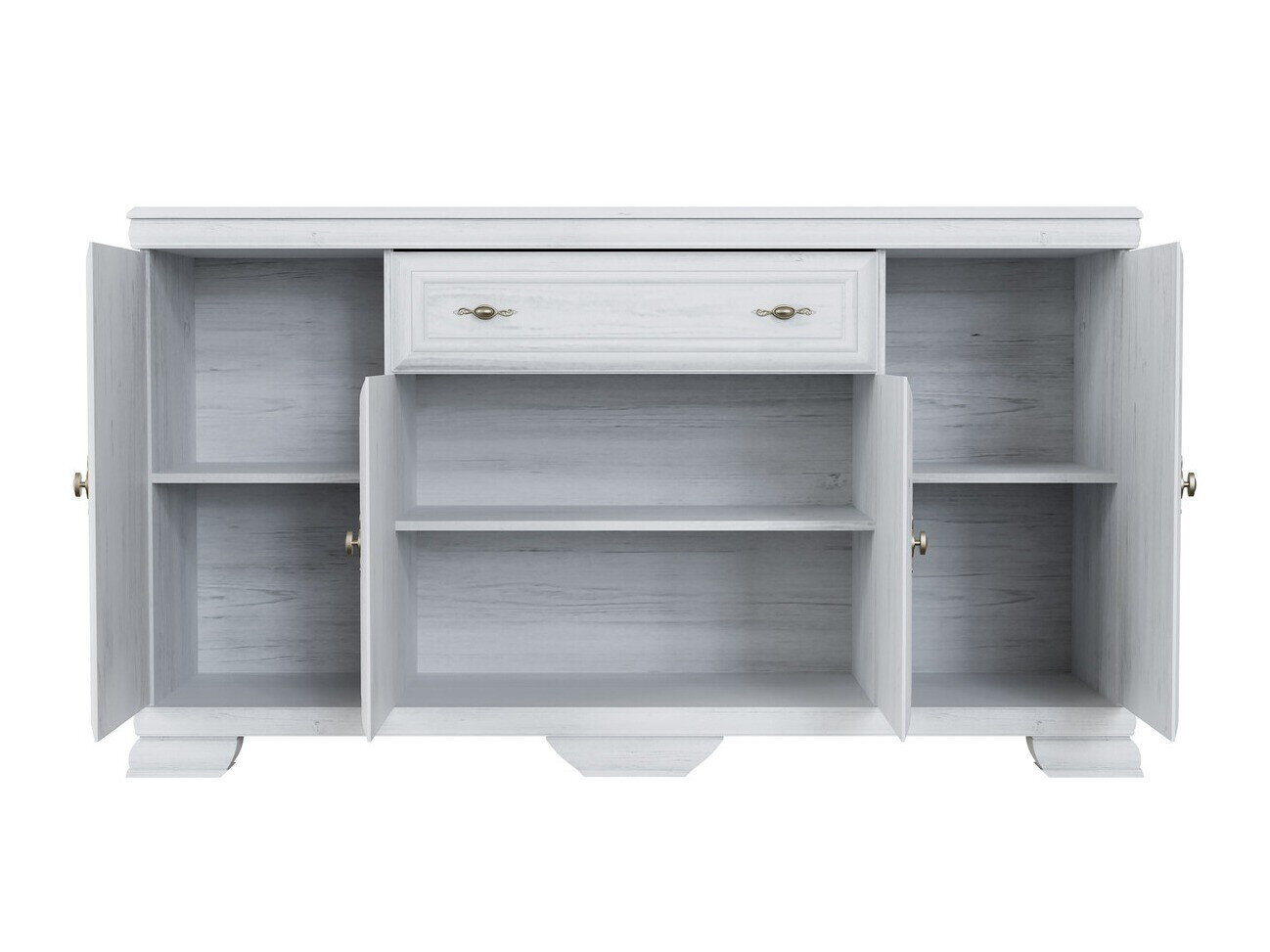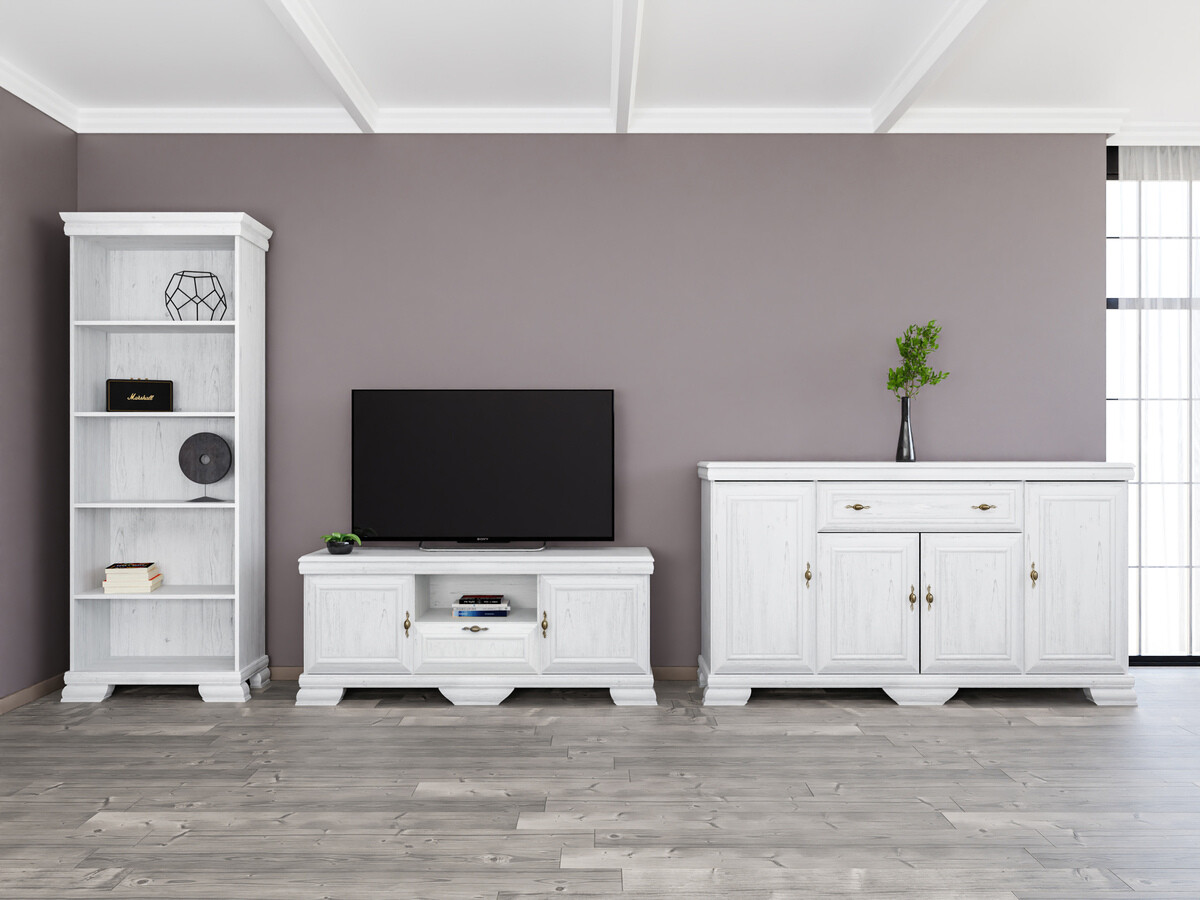 Diese Kollektion im klassischen Stil ist für diejenigen, die zeitloses Design und Eleganz schätzen. Die Möbel der Kollektion sind mit Metallgriffen in exklusivem Design verziert, die jedem Stück einen luxuriösen Akzent verleihen. Eines der wichtigsten Merkmale dieser Kollektion ist ihre kratzfeste Oberfläche, die die Langlebigkeit der Möbel gewährleistet. Selbst nach vielen Jahren kontinuierlicher Nutzung behalten diese Möbel ihr tadelloses Aussehen. Diese Kollektion strahlt nicht nur Eleganz aus, sondern legt auch Wert auf Funktionalität. Die Regale und Schubladen sind geräumig und sorgen dafür, dass Sie genügend Platz haben, um Dinge organisiert aufzubewahren. Die Kombination aus klassischem Stil und Funktionalität sorgt dafür, dass diese Kollektion nicht nur Ihr Interieur schmückt, sondern auch die Qualität Ihres täglichen Lebens steigert. Genießen Sie die Schönheit des klassischen Stils und bringen Sie zeitlose Eleganz in Ihr Zuhause.