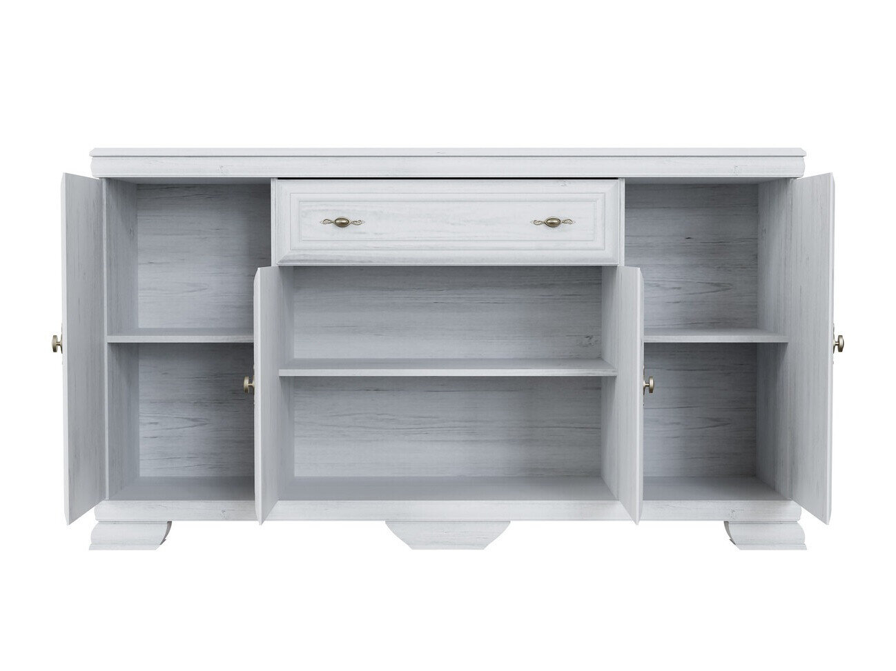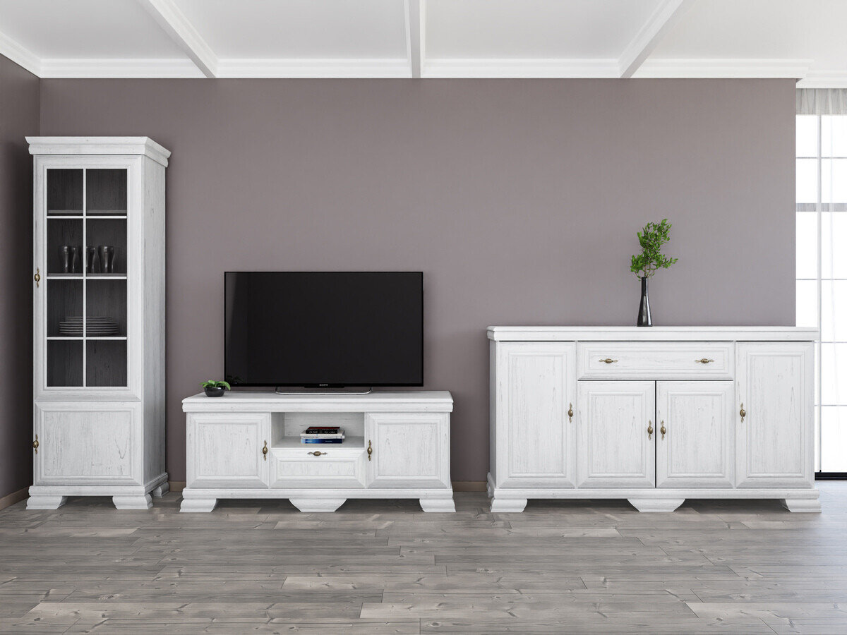 Diese Kollektion im klassischen Stil ist für diejenigen, die zeitloses Design und Eleganz schätzen. Die Möbel der Kollektion sind mit Metallgriffen in exklusivem Design verziert, die jedem Stück einen luxuriösen Akzent verleihen. Eines der wichtigsten Merkmale dieser Kollektion ist ihre kratzfeste Oberfläche, die die Langlebigkeit der Möbel gewährleistet. Selbst nach vielen Jahren kontinuierlicher Nutzung behalten diese Möbel ihr tadelloses Aussehen. Diese Kollektion strahlt nicht nur Eleganz aus, sondern legt auch Wert auf Funktionalität. Die Regale und Schubladen sind geräumig und sorgen dafür, dass Sie genügend Platz haben, um Dinge organisiert aufzubewahren. Die Kombination aus klassischem Stil und Funktionalität sorgt dafür, dass diese Kollektion nicht nur Ihr Interieur schmückt, sondern auch die Qualität Ihres täglichen Lebens steigert. Genießen Sie die Schönheit des klassischen Stils und bringen Sie zeitlose Eleganz in Ihr Zuhause.