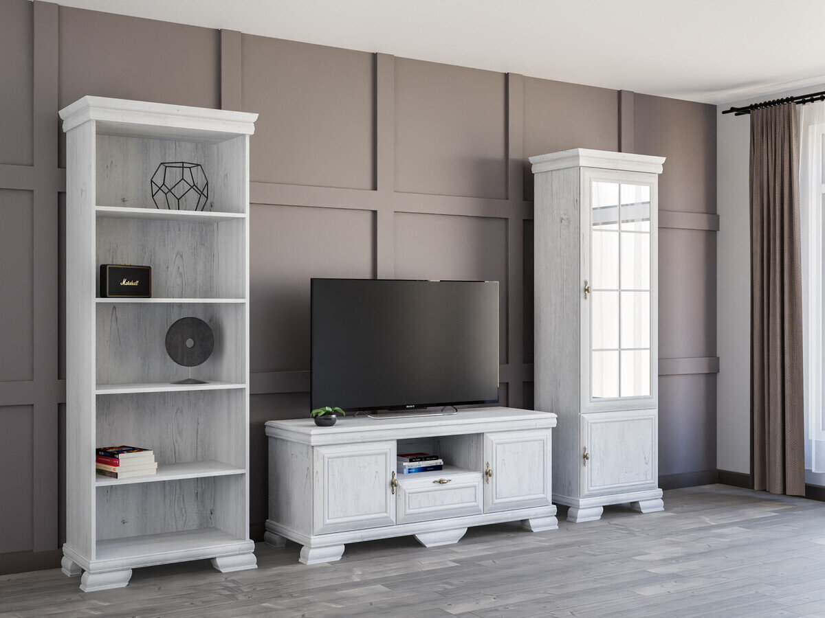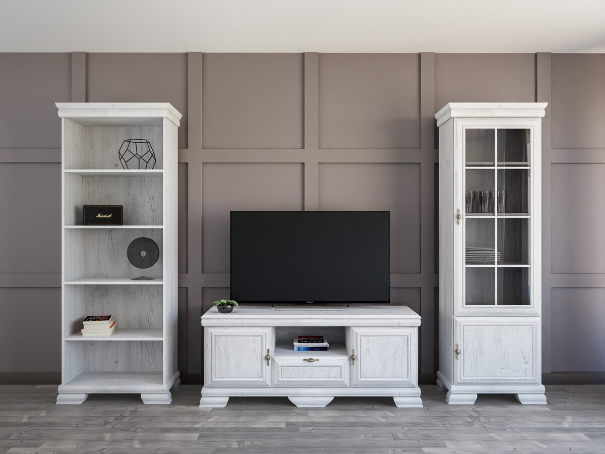 Diese Kollektion im klassischen Stil ist für diejenigen, die zeitloses Design und Eleganz schätzen. Die Möbel der Kollektion sind mit Metallgriffen in exklusivem Design verziert, die jedem Stück einen luxuriösen Akzent verleihen. Eines der wichtigsten Merkmale dieser Kollektion ist ihre kratzfeste Oberfläche, die die Langlebigkeit der Möbel gewährleistet. Selbst nach vielen Jahren kontinuierlicher Nutzung behalten diese Möbel ihr tadelloses Aussehen. Diese Kollektion strahlt nicht nur Eleganz aus, sondern legt auch Wert auf Funktionalität. Die Regale und Schubladen sind geräumig und sorgen dafür, dass Sie genügend Platz haben, um Dinge organisiert aufzubewahren. Die Kombination aus klassischem Stil und Funktionalität sorgt dafür, dass diese Kollektion nicht nur Ihr Interieur schmückt, sondern auch die Qualität Ihres täglichen Lebens steigert. Genießen Sie die Schönheit des klassischen Stils und bringen Sie zeitlose Eleganz in Ihr Zuhause.