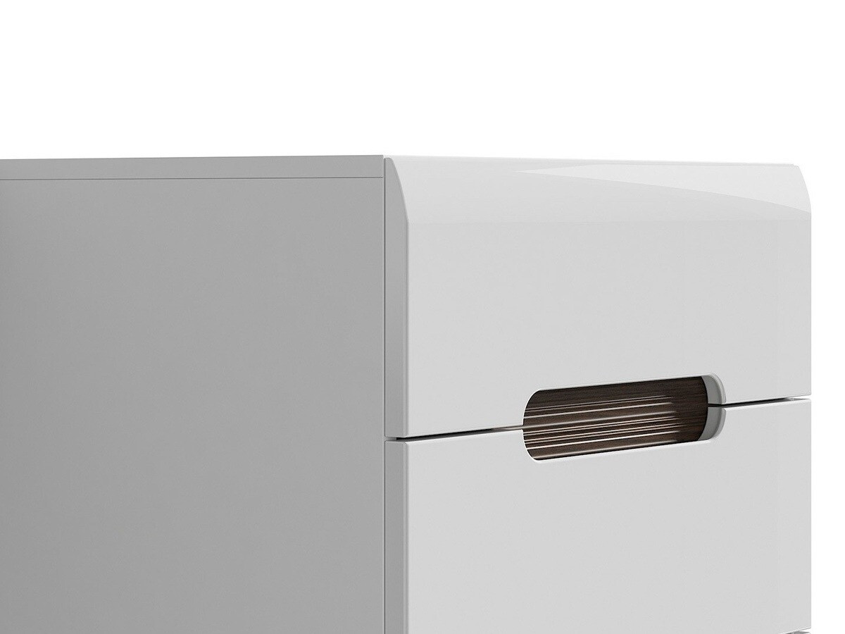 Diese Kollektion ist eine ausgezeichnete Wahl für diejenigen, die ein modernes Wohninterieur schaffen möchten, das sich mit seiner hellen Farbe sowohl für kleine als auch für große Räume perfekt eignet. Die Kollektion zeichnet sich durch glänzende Türfassaden und versteckte Griffe aus. Der geräuschlose Schließmechanismus der Möbel verhindert ein schnelles Schließen von Türen und Schubladen. Die Vitrinen der Kollektion verwenden gehärtetes Glas, dessen Widerstandsfähigkeit 5-6 mal höher ist als bei gewöhnlichem, thermisch unbehandeltem Glas. Eine integrierte energiesparende LED-Beleuchtung verleiht den Möbeln einen einzigartigen Charakter.