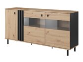 Eine Möbelkollektion, die modernes Design mit Funktionalität verbindet. Mit dieser Kollektion können Sie ein hochmodernes Wohnzimmer gestalten oder jeden anderen Raum in Ihrem Zuhause aufwerten. Die Ästhetik und Geräumigkeit der Möbel ermöglichen es Ihnen, verschiedene Gegenstände organisiert und ordentlich aufzubewahren, ohne Ihr Zuhause zu überladen. Die Kollektion umfasst die Farben Anthrazit und „Artisan“-Eiche und schafft so eine einzigartige Kombination, die in jedem Raum stilvoll aussieht. Metallbeine und -griffe sorgen für ein elegantes Aussehen und Stabilität und sorgen für eine bequeme Nutzung. Das geradlinige Design verleiht den Möbeln ein Gefühl von Anmut und Leichtigkeit. Das Vitrinenglas der Kollektion besteht aus gehärtetem Glas, das sicherer und langlebiger als normales Glas ist. Alle Möbel der Kollektion verfügen außerdem über geschützte Kanten und sind mit einem Roboterstaubsauger kompatibel.