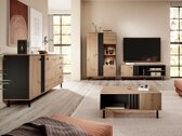 Eine Möbelkollektion, die modernes Design mit Funktionalität verbindet. Mit dieser Kollektion können Sie ein hochmodernes Wohnzimmer gestalten oder jeden anderen Raum in Ihrem Zuhause aufwerten. Die Ästhetik und Geräumigkeit der Möbel ermöglichen es Ihnen, verschiedene Gegenstände organisiert und ordentlich aufzubewahren, ohne Ihr Zuhause zu überladen. Die Kollektion umfasst die Farben Anthrazit und „Artisan“-Eiche und schafft so eine einzigartige Kombination, die in jedem Raum stilvoll aussieht. Metallbeine und -griffe sorgen für ein elegantes Aussehen und Stabilität und sorgen für eine bequeme Nutzung. Das geradlinige Design verleiht den Möbeln ein Gefühl von Anmut und Leichtigkeit. Das Vitrinenglas der Kollektion besteht aus gehärtetem Glas, das sicherer und langlebiger als normales Glas ist. Alle Möbel der Kollektion verfügen außerdem über geschützte Kanten und sind mit einem Roboterstaubsauger kompatibel.