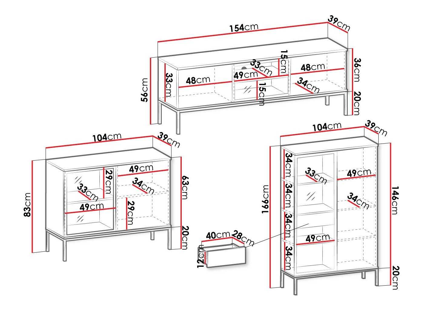 56 x 154 x 39 cm
