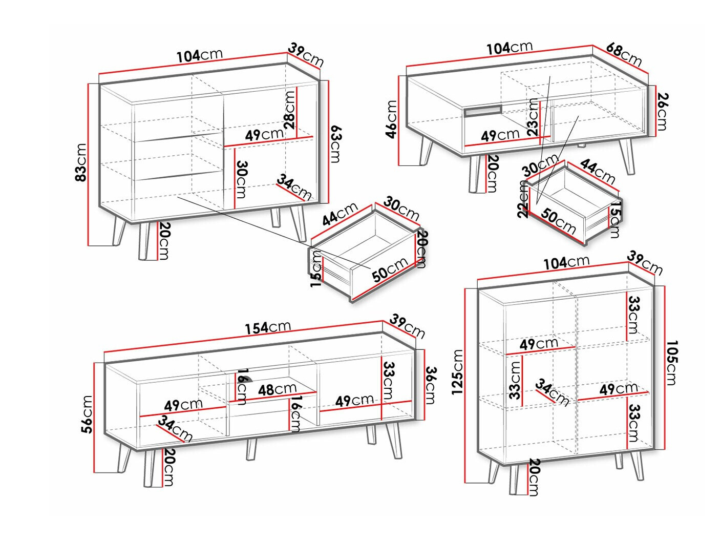 Abmessungen der Schränke: