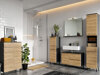 Die Badmöbelkollektion hilft Ihnen, ein modernes Interieur im Badezimmer zu schaffen. In dieser Möbelkollektion können Sie aus mehreren Farboptionen wählen. Kollektionsmöbel können dunklere und hellere Farben haben. Ergänzt wird die Kollektion durch Metallbeine, die den Innenraum beleuchten. Alle Möbel der Kollektion sind mit einem farblosen Stoff überzogen, der die Möbel vor kleinen Kratzern schützt. Die mit kunststoffgeschützten Kanten der Möbel sind widerstandsfähig gegen mechanische Beschädigungen durch den täglichen Gebrauch. Die Schubladen und Türen verfügen über einen geräuschlosen Schließmechanismus, das Besondere daran ist, dass er ein schnelles Schließen verhindert. Funktionalität und Komfort sind wesentliche Merkmale dieser in Deutschland hergestellten Kollektion. Die Möbel in der Kollektion haben die Funktion von verstellbaren Regalen, mit denen Sie die bequemste Art der Aufbewahrung von Gegenständen schaffen können. Gestalten Sie mit dieser Möbelkollektion ein modernes Badezimmer.