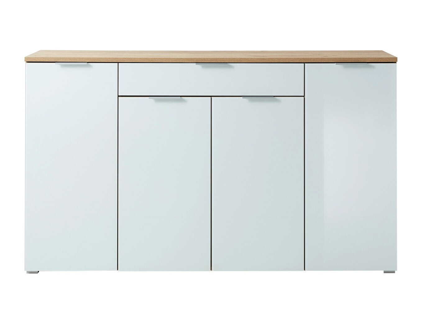 Die Möbelkollektion verkörpert den modernen Innenraum. Die vorherrschende Farbe Weiß wird durch helle Holzdekore und Metallgriffe in minimalistischem Design ergänzt. Alle Möbelfronten sind mit gehärtetem Glas verkleidet, das extrem widerstandsfähig ist. Die Möbel dieser Kollektion verfügen über einen geräuschlosen Schließmechanismus. Das Besondere an diesem Mechanismus ist, dass er die Türen und Schubladen vor dem schnellen Schließen schützt. Dank spezieller Bremsen werden die Türen und Schubladen kurz vor dem Schließen angehalten und langsam eingezogen, so dass kein Geräusch entsteht. Schaffen Sie mit dieser Möbelkollektion eine harmonische Umgebung.