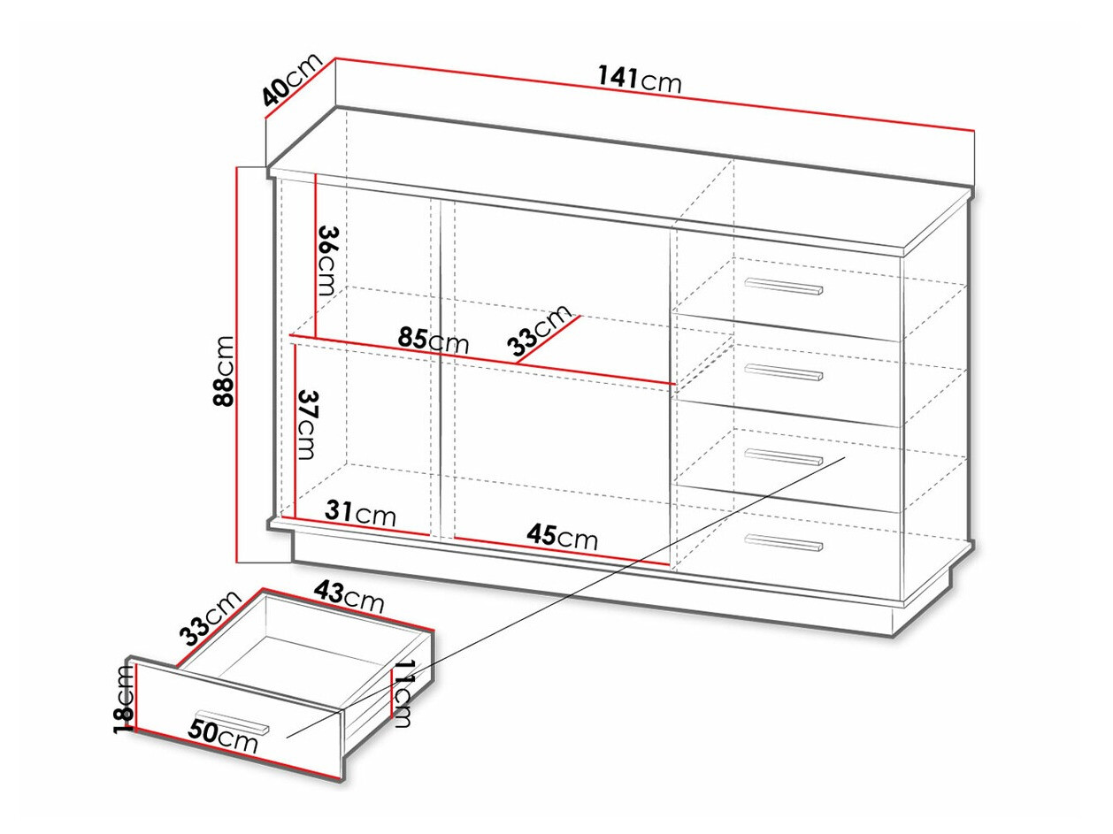 Diese Möbelkollektion trägt dazu bei, eine gemütliche und warme Atmosphäre in Ihrem Zuhause zu schaffen. Die dekorativen Fronten und schwarzen Kunststoffgriffe verleihen den Möbeln Charakter und verleihen dem gesamten Innenraum Charme. Die Vitrinenmöbel bestehen aus gehärtetem Glas, das sicherer und widerstandsfähiger ist als gewöhnliches wärmebehandeltes Glas. Auch im Möbelbau werden MDF-Platten eingesetzt, da sie eine hohe Bruch- und Biegefestigkeit aufweisen. Für zusätzliche Gemütlichkeit im Raum können Möbel mit LED-Beleuchtung separat bestellt werden, die die Wärme und Atmosphäre Ihres Zuhauses noch verstärken.