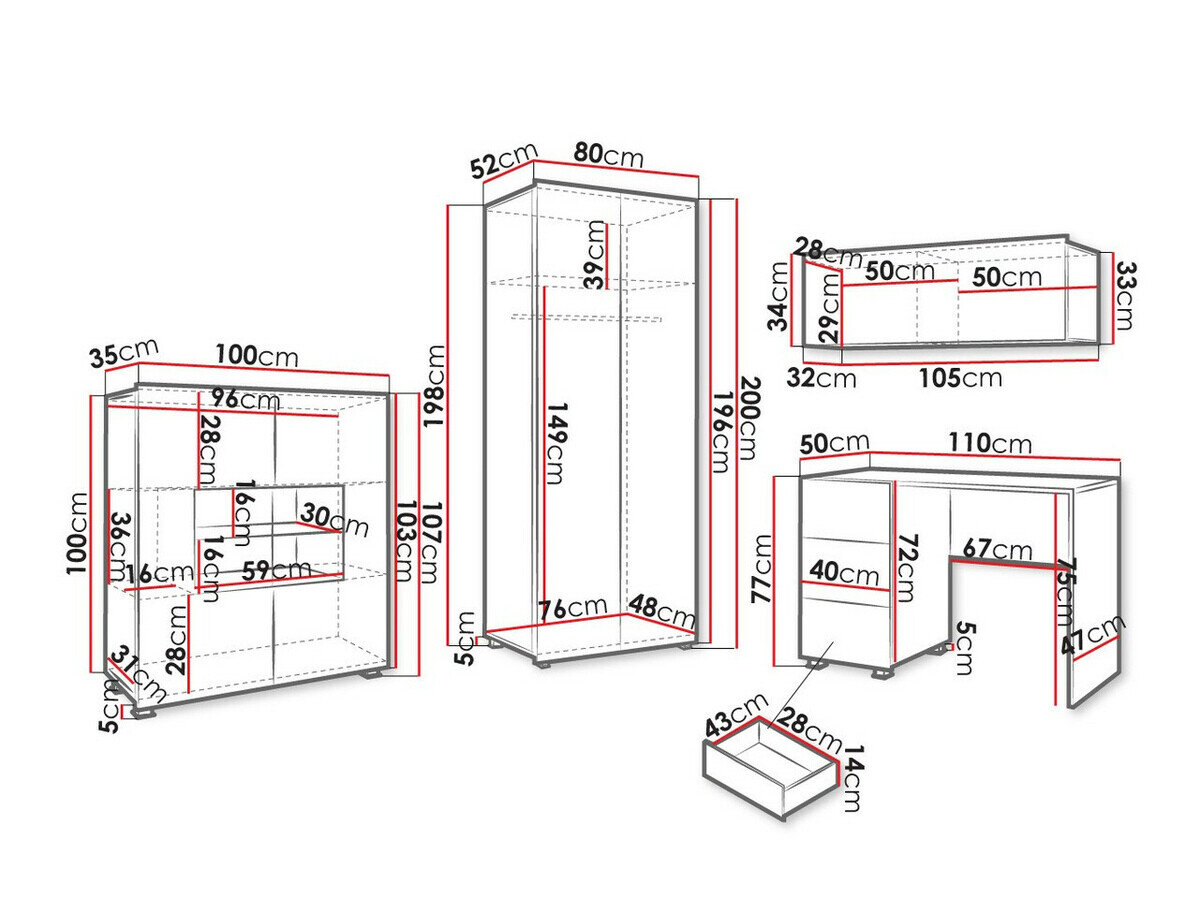 Abmessungen der Schränke: