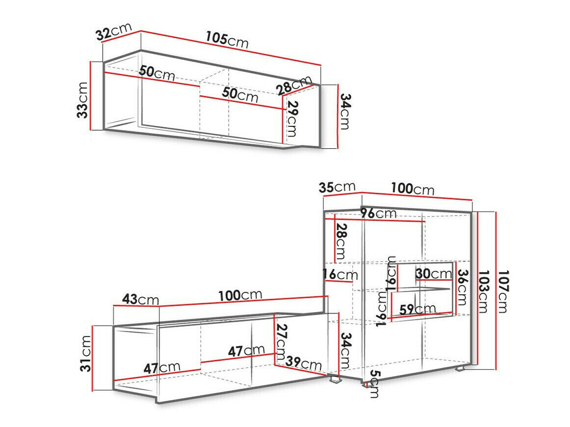 34 x 105 x 32 cm