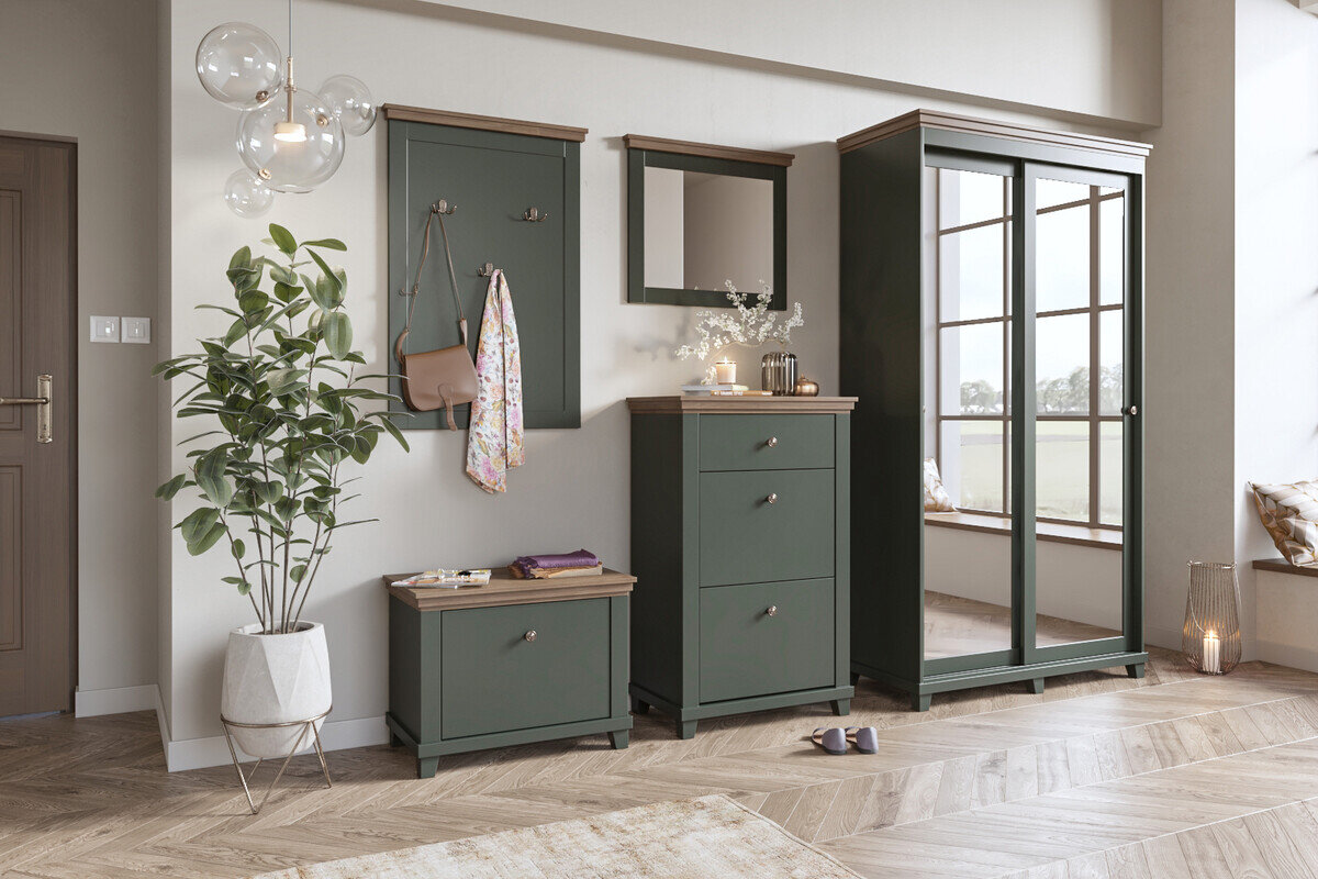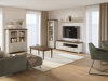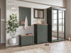 Diese Möbelkollektion spiegelt den Stil zeitloser Klassiker wider, ergänzt durch moderne Farbkombinationen. Kleine Metallgriffe und Kunststoffbeine in Kombination mit dunkelgrüner „Lefkas"-Eiche oder gebleichten Eschenfarben tragen dazu bei, das Design des Raums übersichtlich zu halten. Die Kollektion bietet praktische Möbel, die sich zur Aufbewahrung von Dingen eignen. Vitrinen sind ideal für Geschirr, Essgeschirr oder Dekoration, während Kommoden zur Aufbewahrung genutzt werden können - etwas, was Sie nicht jeden Tag sehen möchten. Zusätzlichen Charme können die Möbel durch eine separat bestellbare LED-Beleuchtung verleihen. Die Kollektion ist FSC-zertifiziert, was sicherstellt, dass die Möbel aus Bio-Holz aus wirtschaftlich vorteilhaften Wäldern hergestellt werden.