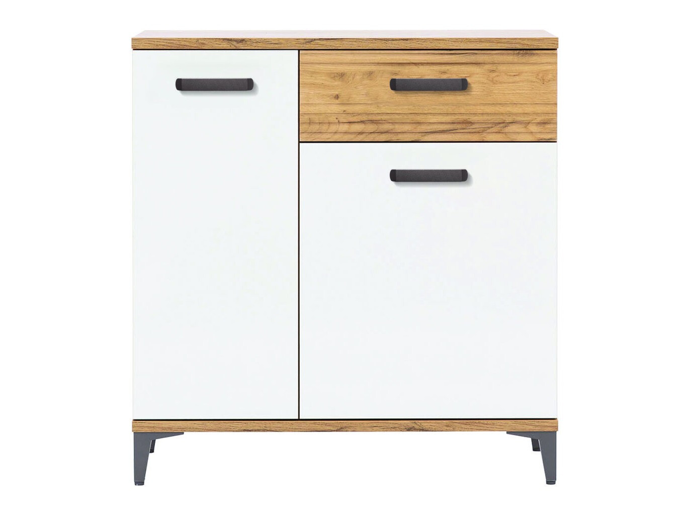 Sie werden wahrscheinlich zustimmen, dass es ein wahres Vergnügen ist, Zeit in einem gemütlichen Wohnzimmer zu verbringen - man benötigt nur die richtigen Möbel, die zur gewünschten Stimmung beitragen. Diese Kollektion von Wohnzimmermöbeln ist perfekt für diejenigen, die nach modernen und gleichzeitig gemütlichen Lösungen für ihr Zuhause suchen. Diese Möbel kombinieren glänzendes Weiß und goldene Eichenholzoptik. Diese Farbkombination strahlt Wärme und Gemütlichkeit aus. Den Eindruck von Natürlichkeit vermitteln auch die Holzmuster, die sich auf den Fronten der Möbel abzeichnen. Ein wichtiger Akzent sind die Möbelgriffe, die durch ihr Design für den einzigartigen Charakter der Möbel sorgen. Die Form der Griffe und die Platzierung der goldenen Intarsien in Eichenholzoptik bilden eine spielerische Kombination. Auch die Funktionalität kommt nicht zu kurz: In den geräumigen Möbelelementen, Regalen und Vitrinen können Sie alle wichtigen Gegenstände bequem unterbringen. Die Vitrinen sind aus gehärtetem Glas gefertigt, das eine höhere mechanische Festigkeit aufweist als gewöhnliches, thermisch unbehandeltes Glas. Schubladen und Türen sind mit einem geräuschlosen Schließmechanismus ausgestattet. Das Besondere an diesem Mechanismus ist, dass er die Türen und Schubladen vor dem schnellen Schließen schützt. Eine noch gemütlichere Atmosphäre zu Hause schaffen Sie, wenn Sie eine zusätzlich LED-Beleuchtung bestellen.