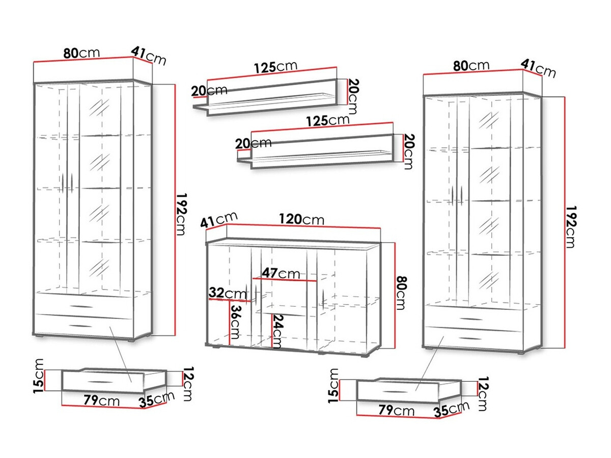 Abmessungen der Schränke: