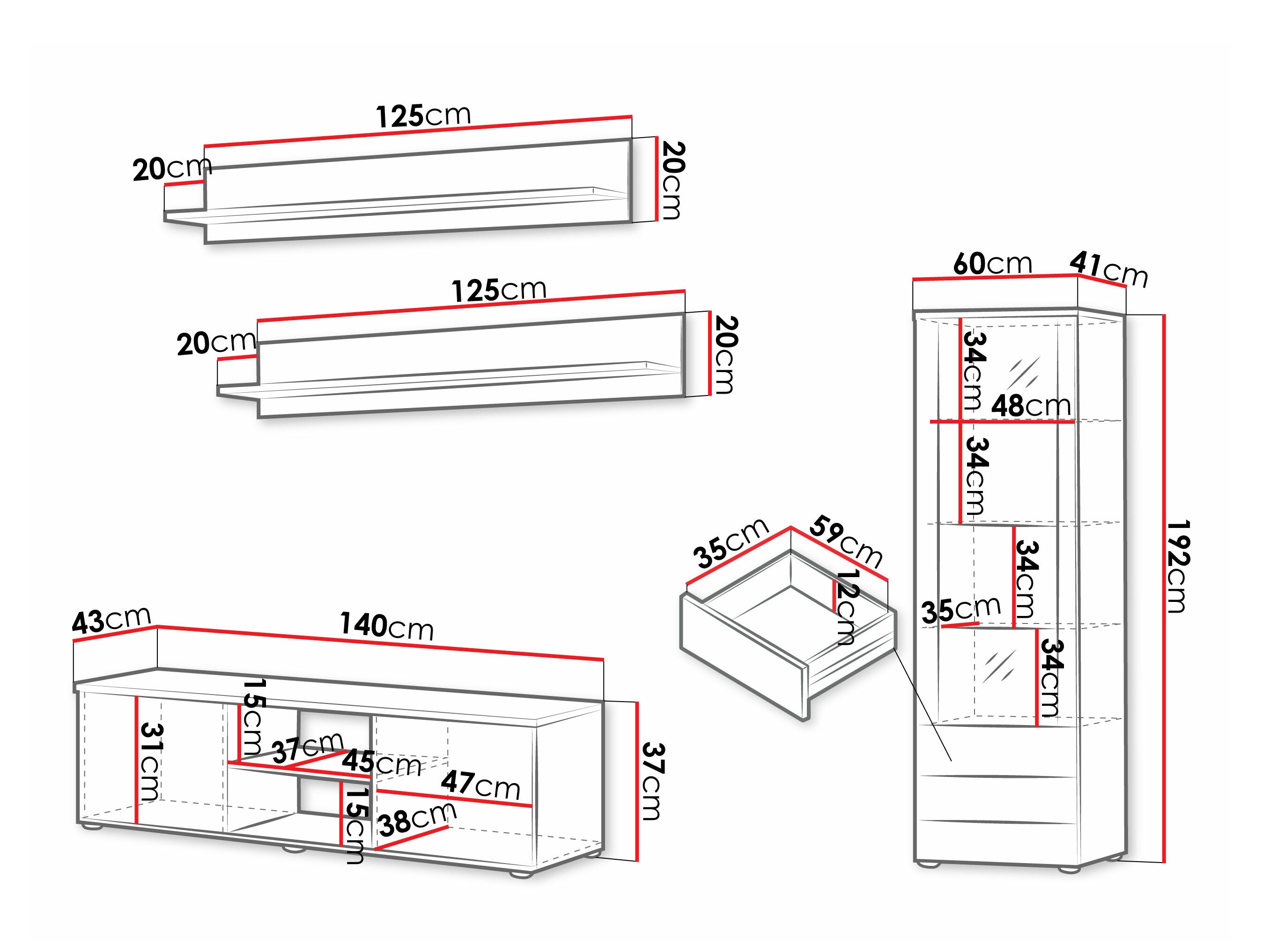 37 x 140 x 43 cm