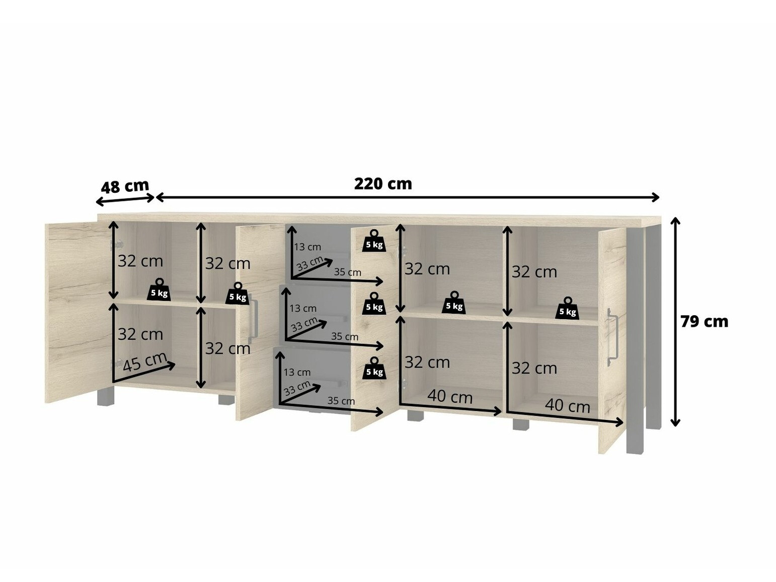 Diese Kollektion im Industriestil ist mit besonderer Liebe zum Detail gefertigt. Das Besondere an dieser Kollektion ist die extrem matte Oberfläche der Möbel, die durch eine spezielle Folie entsteht. Diese Folie ist resistent gegen Berührungsspuren, verhindert Fingerabdrücke und erleichtert die Pflege. Die matte Oberfläche sieht glatt aus und betont perfekt das einzigartige Design der Möbel. Der Industriestil wird durch die schwarzen Kunststoffgriffe noch weiter hervorgehoben. Die Möbel dieser Kollektion sind vielseitig einsetzbar; beim Zusammenbau können Sie die Seite wählen, auf der sich die Tür öffnet. Darüber hinaus sind die Regale höhenverstellbar, sodass Sie die Möbel an Ihre Bedürfnisse anpassen können. Jedes Stück dieser Kollektion verkörpert einen perfekten Industrielook. Wenn Sie ein industrielles Interieur schaffen möchten, ist diese Kollektion genau das Richtige für Sie.
