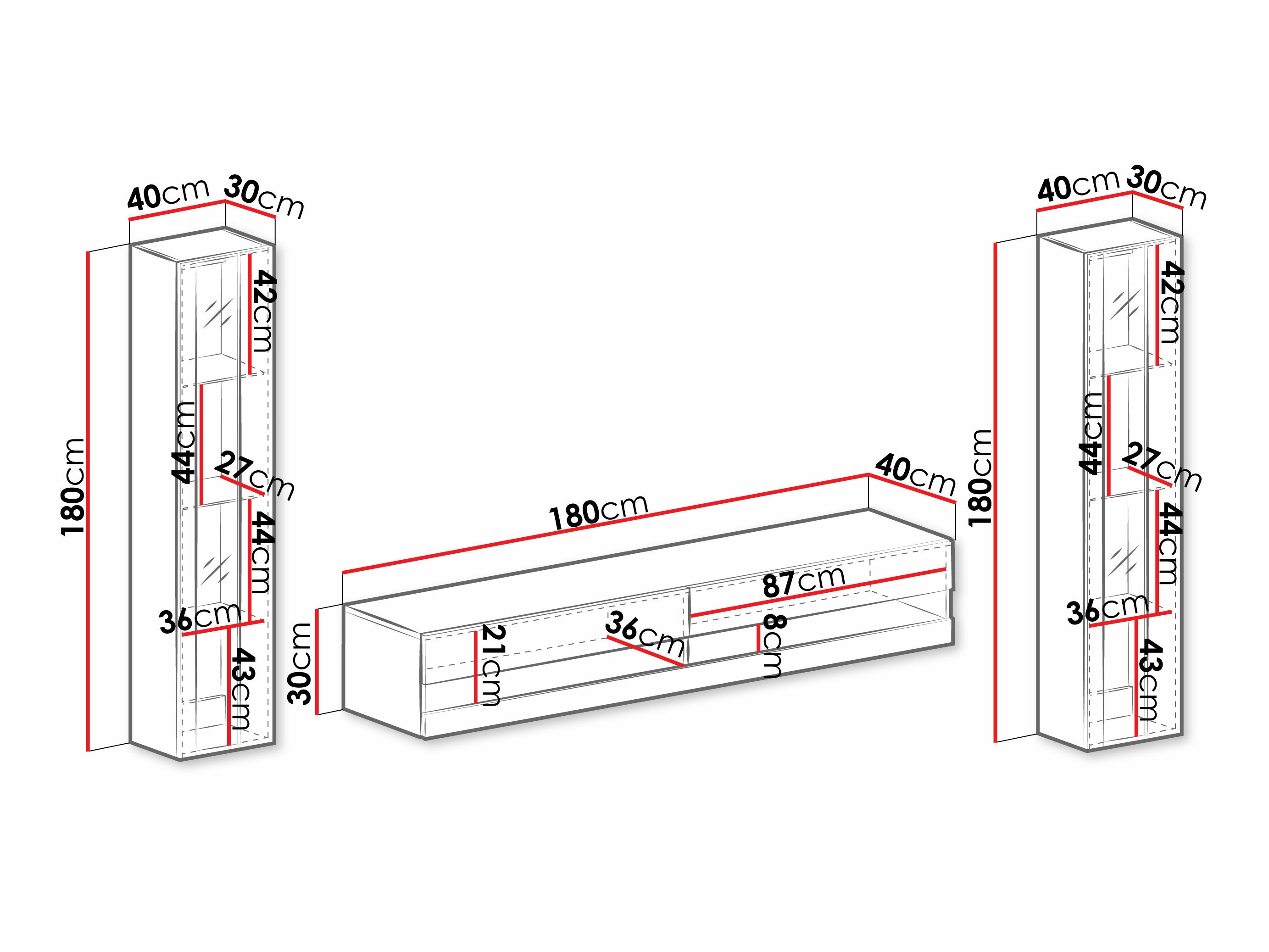 Ich dachte, die Seitensäulen hätten Glas, aber es ist kein Spalt ohne irgendetwas von oben bis unten am Möbelstück, ich glaube, das wurde auf der Website nicht gut erklärt. Ansonsten war alles in Ordnung, die Möbel kamen in einwandfreiem Zustand in einer Verpackung an, die sie perfekt schützte. Bringen Sie alles mit, was Sie zum Aufhängen brauchen