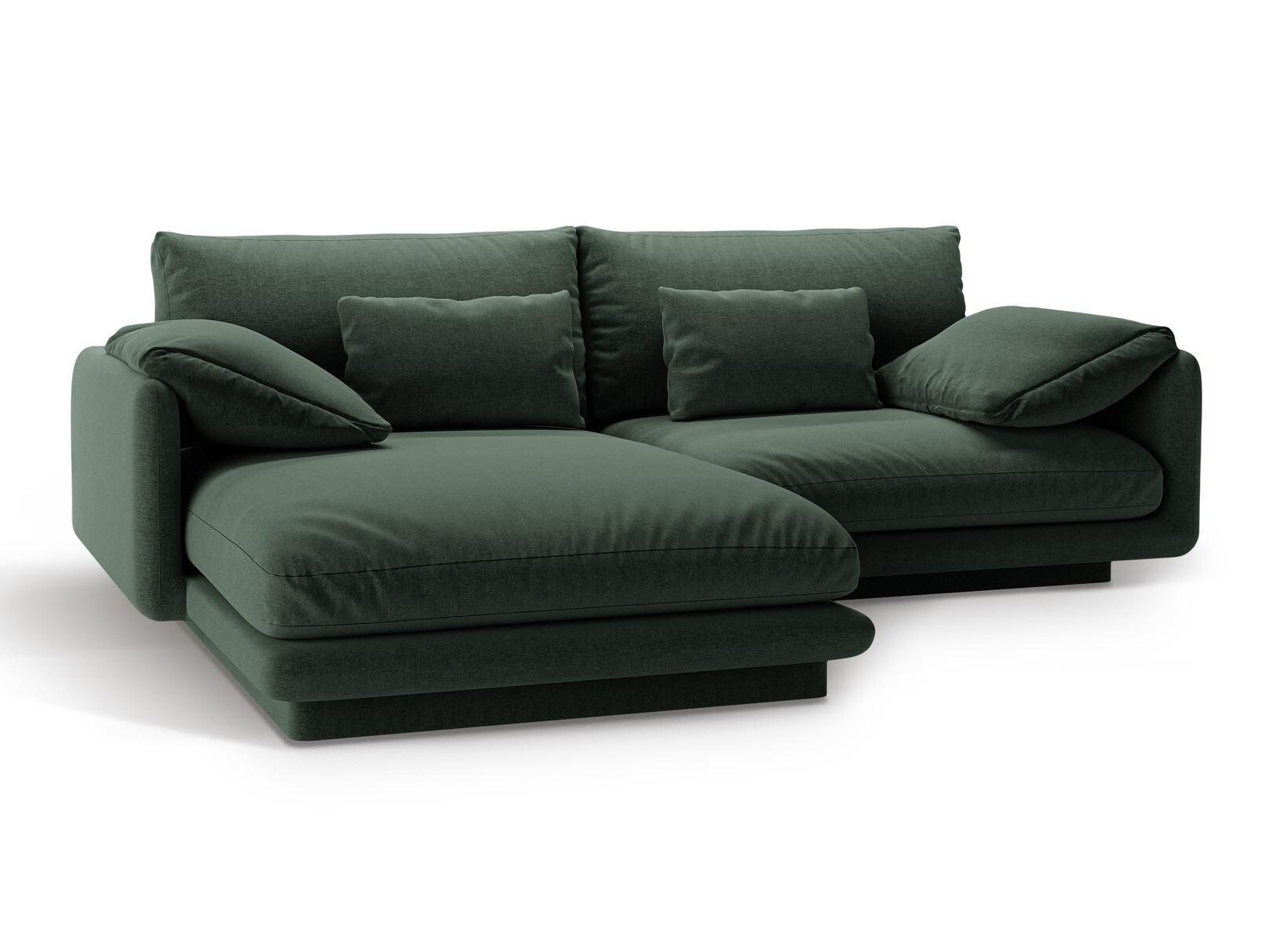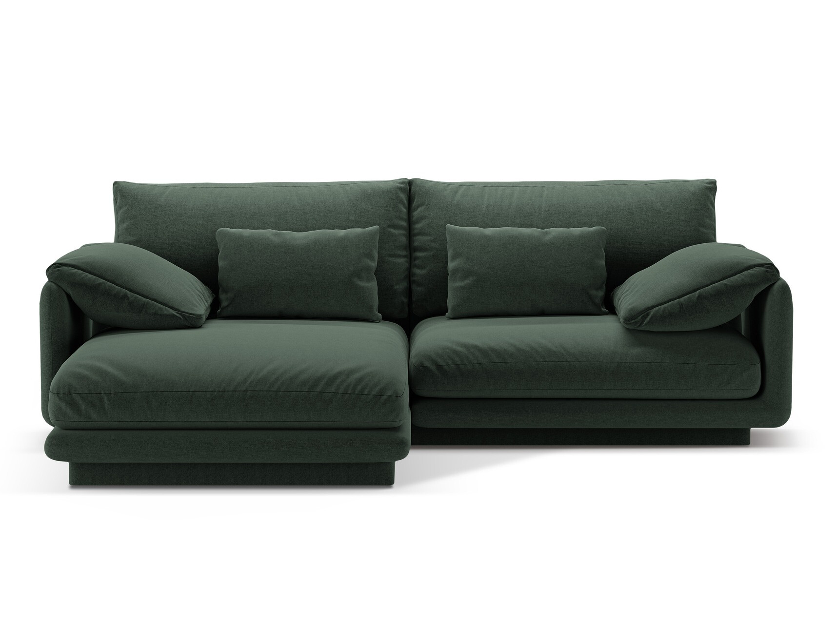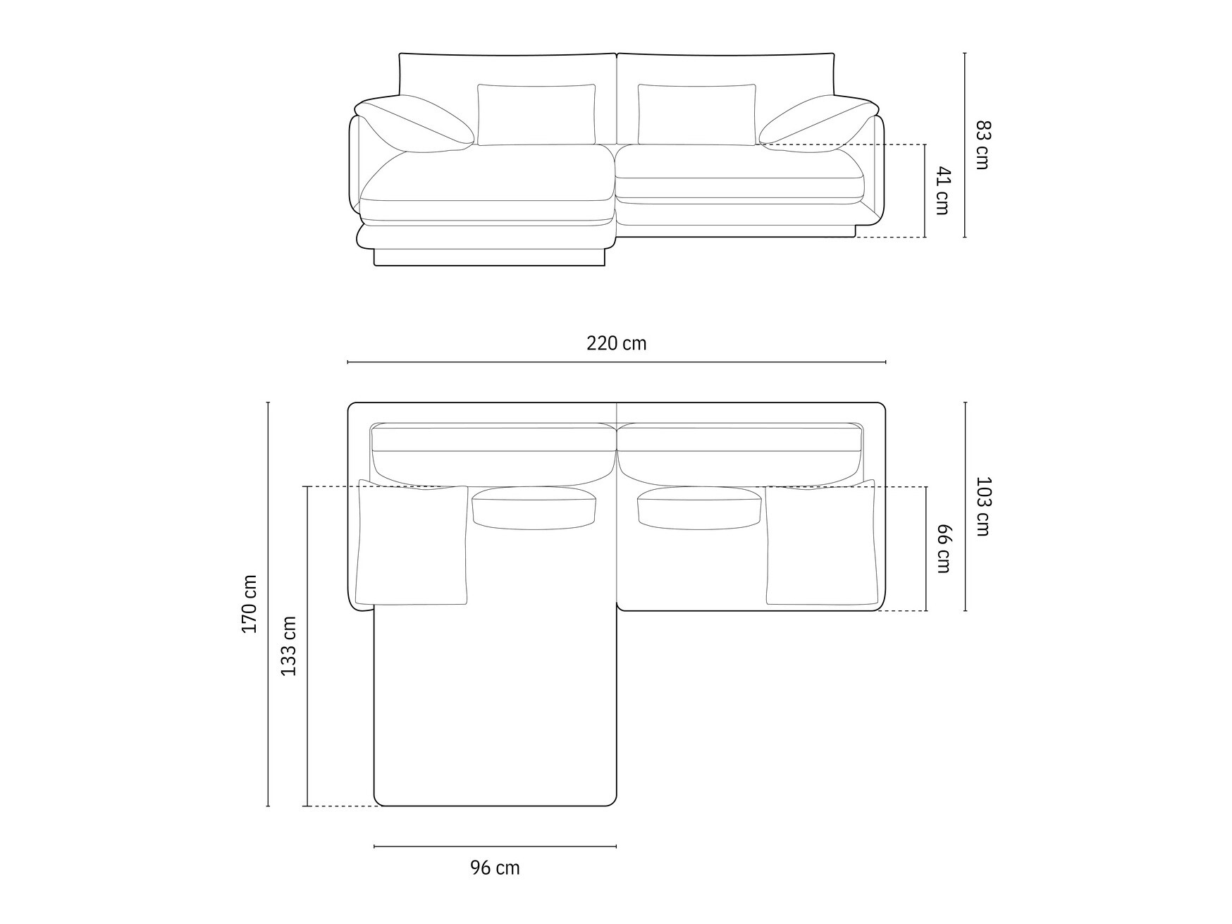 Wenn Sie das Sofa von vorne betrachten, befindet sich der verlängerte Teil bzw. die Ecke der linksseitigen Option auf Ihrer linken Seite. Die gewählte Eckoption sollte den Fluss des Raums verbessern und eine einfache Bewegung innerhalb des Raums ermöglichen.