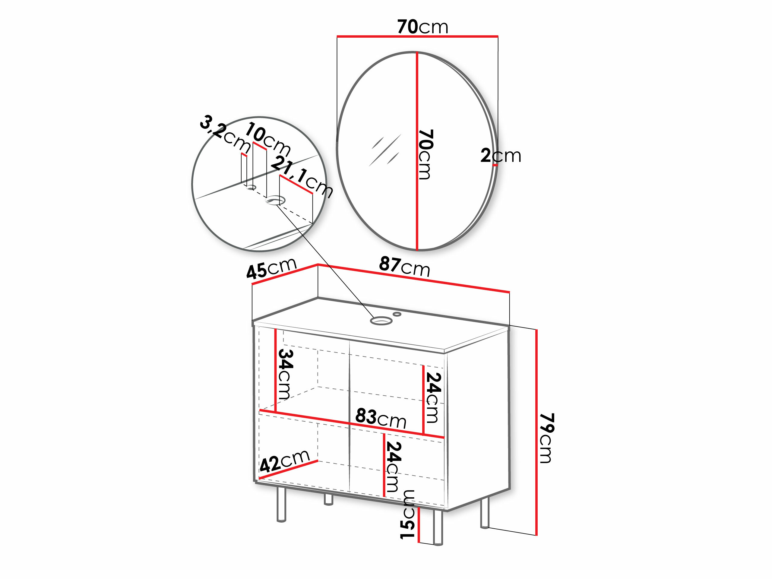 Informationen zur Wandbefestigung. Wandmontierte oder hängende Möbel werden ohne Montageschrauben geliefert, so dass Sie sich selbst um diese kümmern müssen. Verschiedene Arten von Wänden erfordern spezifische Schrauben oder sogar unterschiedliche Bohrtiefen. Wählen Sie das Befestigungsmaterial entsprechend dem Gewicht des Möbelstücks und der Art der Wand (z. B. Trockenbauwand, Mauerwerk, Holz usw.). Um Qualität und Sicherheit zu gewährleisten, sollten Sie Schrauben verwenden, die speziell für Ihre Wandart geeignet sind.