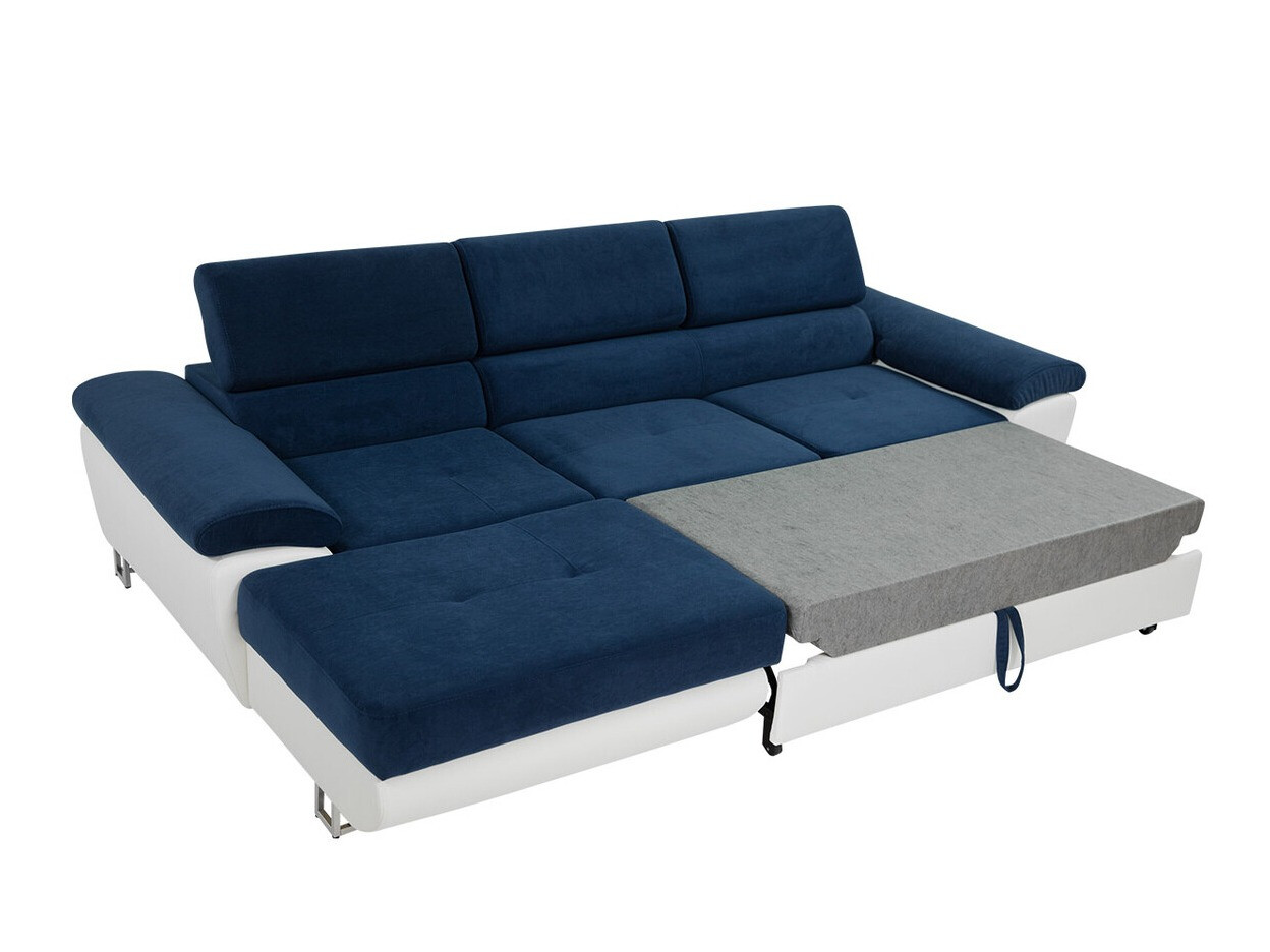 Es handelt sich um eine einfache und bequeme Lösung, mit der Sie das Möbelstück ohne großen Aufwand umbauen können. Die Schublade unter dem Sitz ist unsichtbar, und wenn sie herausgezogen wird, kann das Möbelstück zu einem großartigen Schlafplatz werden. Um das Möbel aufzuklappen, ziehen Sie einfach den unteren Teil zu sich heran und ziehen Sie die Schublade mit der zusätzlichen Schlaffläche heraus. Verwenden Sie die Schlaufe, um die Matratze darin anzuheben. Dieser Schlafbereich ist etwas steifer als üblich. Da sich der hintere Teil nicht bewegt, können Möbel mit diesem Mechanismus direkt an die Wand gestellt werden.