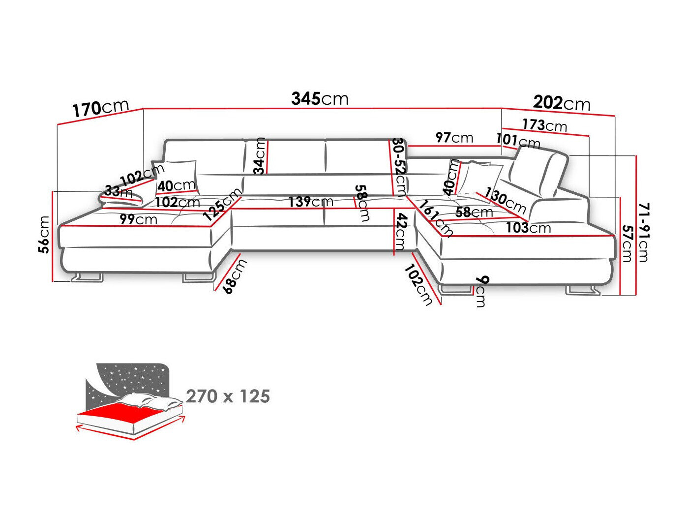 Breite des Schlafbereichs: