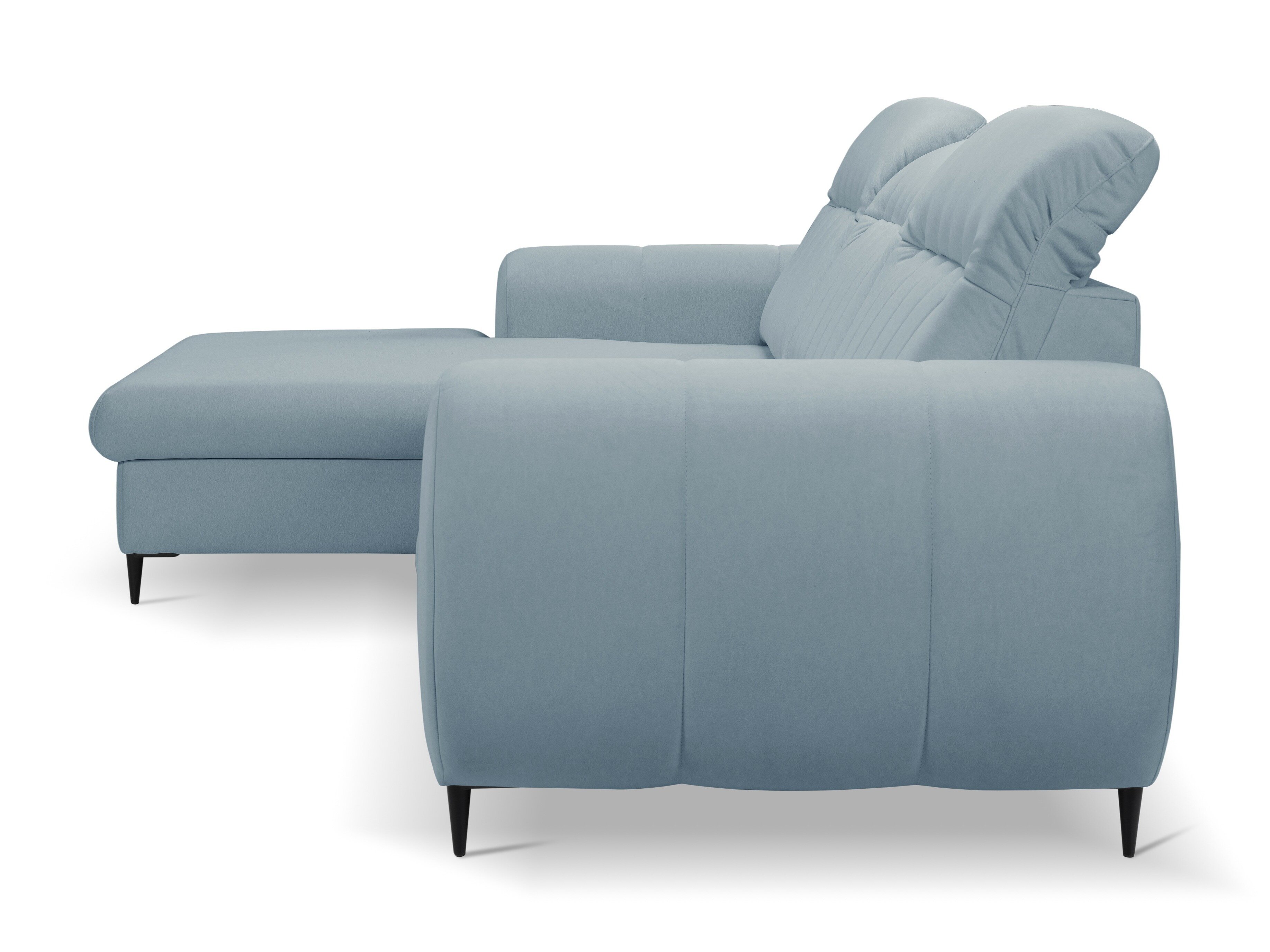 Wenn Sie das Sofa von vorne betrachten, befindet sich der verlängerte Teil bzw. die Ecke der linksseitigen Option auf Ihrer linken Seite. Die gewählte Eckoption sollte den Fluss des Raums verbessern und eine einfache Bewegung innerhalb des Raums ermöglichen.