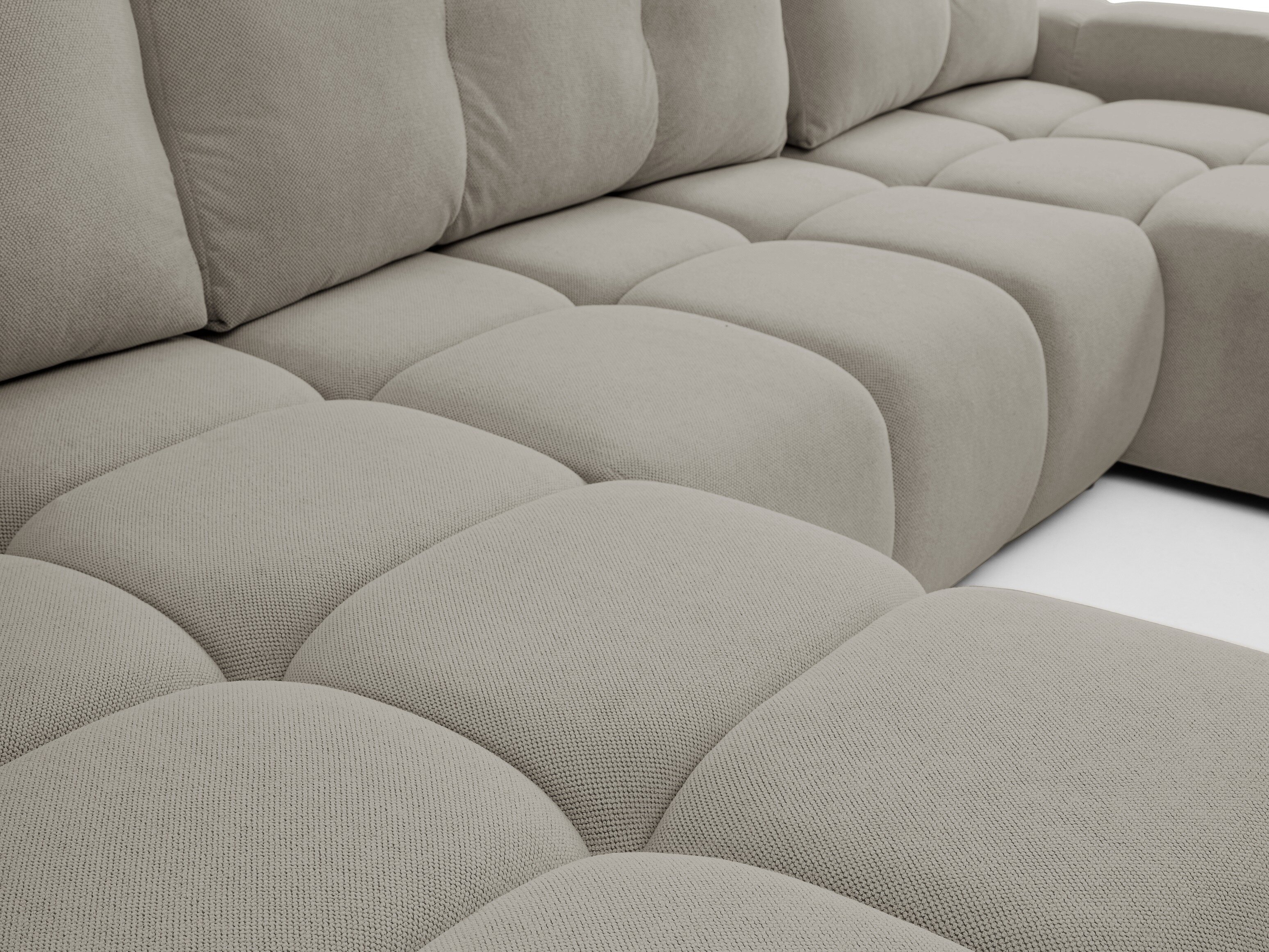 Dieser Mechanismus des Möbels ist insofern einzigartig, als sich der Teil, der sich bewegt, bewegt, ohne den Boden zu berühren, wodurch der Boden vor möglichen Kratzern geschützt wird. Heben Sie einfach den Sitz an und ziehen Sie ihn leicht zu sich heran. Dann senken Sie die Rückenlehne des Möbels ab, um einen Platz zum Schlafen vorzubereiten.